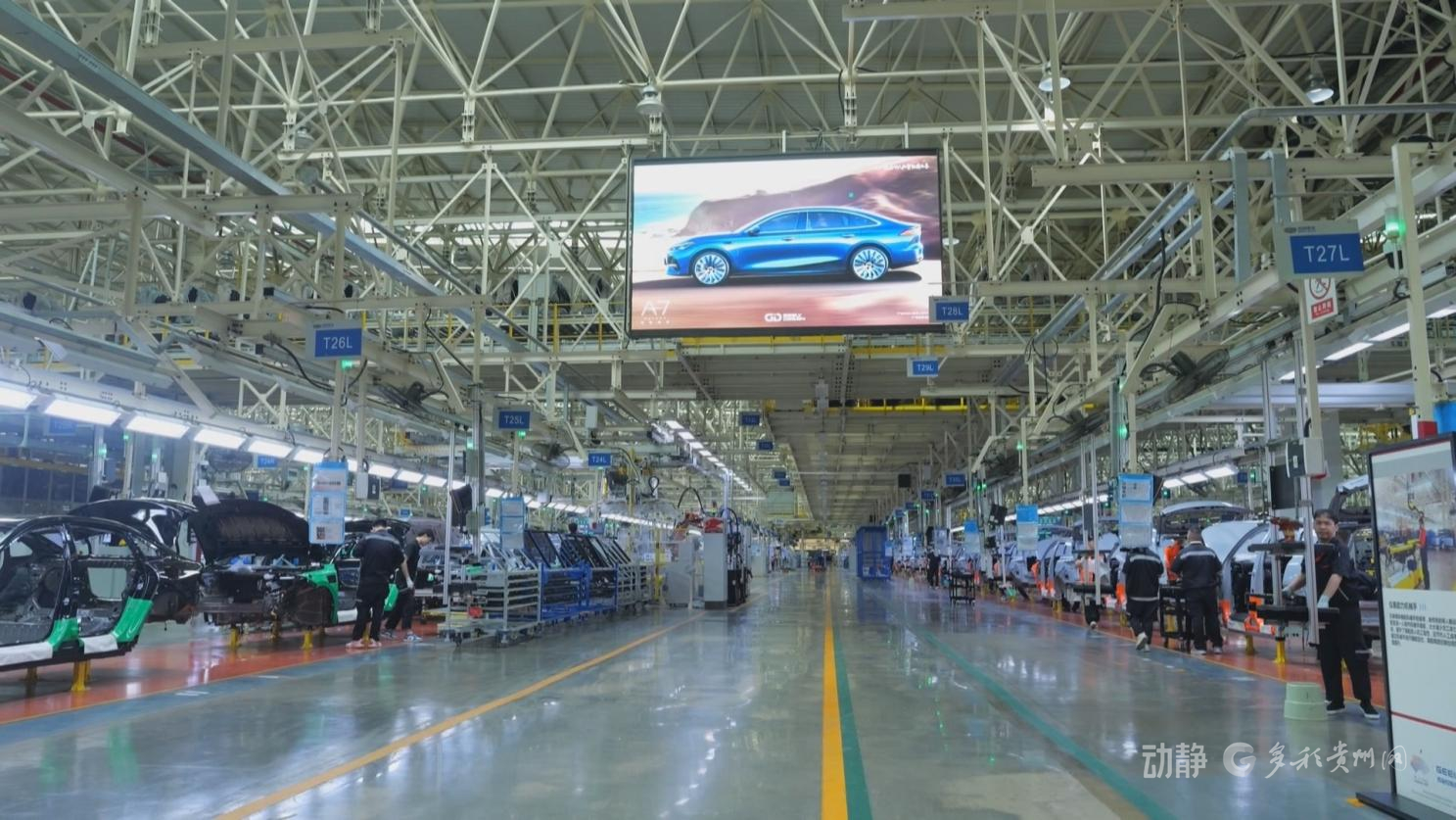 在吉利汽车贵阳制造基地,总装车间生产线开足马力,平均每80秒就能造出一辆新车。