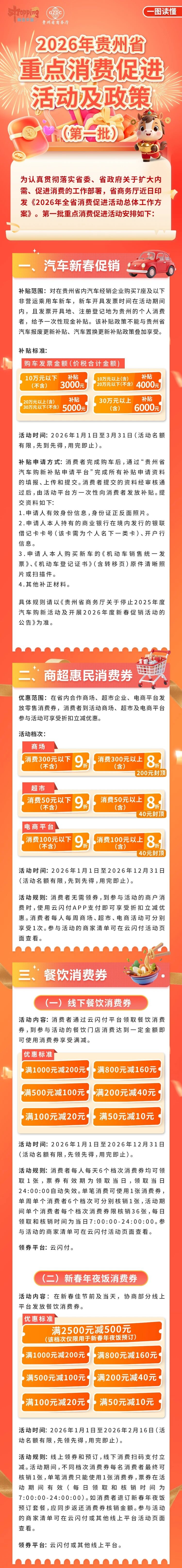 • 活动丰富,消费券多样,贵州将多形式开展2026年促消费活动
