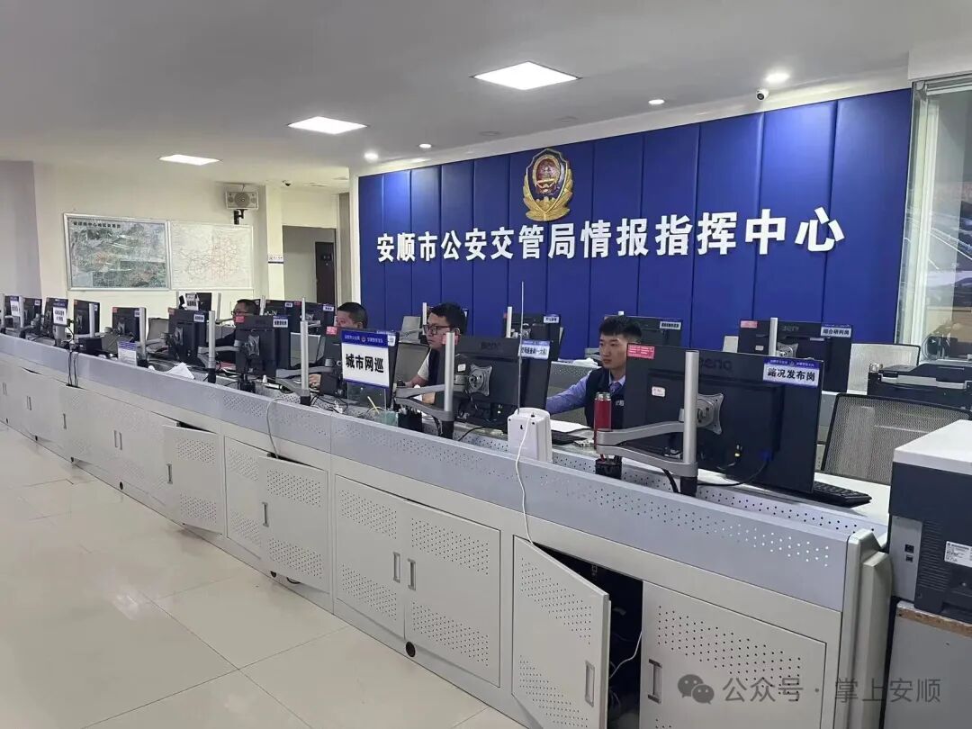 此外,假期期间,安顺交警根据往年交通流量情况分析,提前做好分析研判,发布“两公布一提示”,及时公布辖区流量研判、天气变化、临时管制、易拥堵路段及事故多发路段等信息,做好安全出行提示。安顺交警指挥中心24小时在线不间断开展网巡,利用监控平台和指挥调度系统,加强交通流量分析研判,实时上传路况至导航软件,向车主提供实时路况信息,引导车辆提前分流,避开拥堵路段,全力保障假期道路安全畅通。