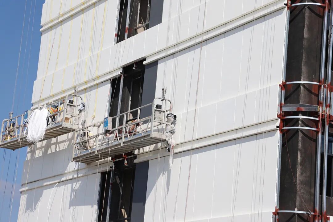 近日,来到位于西秀经开区的贵州航空产业城航空结构部件加工产业园B地块建设项目施工现场,左侧的产学研大楼前,工人们正忙着进行幕墙安装,其余各个作业点上的工人们也在有序作业,一派繁忙火热景象。