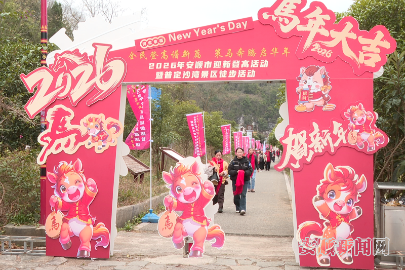 1月1日,安顺市迎新登高活动暨普定沙湾景区徒步活动在普定沙湾景区举办,800名市民参与5公里山野徒步。