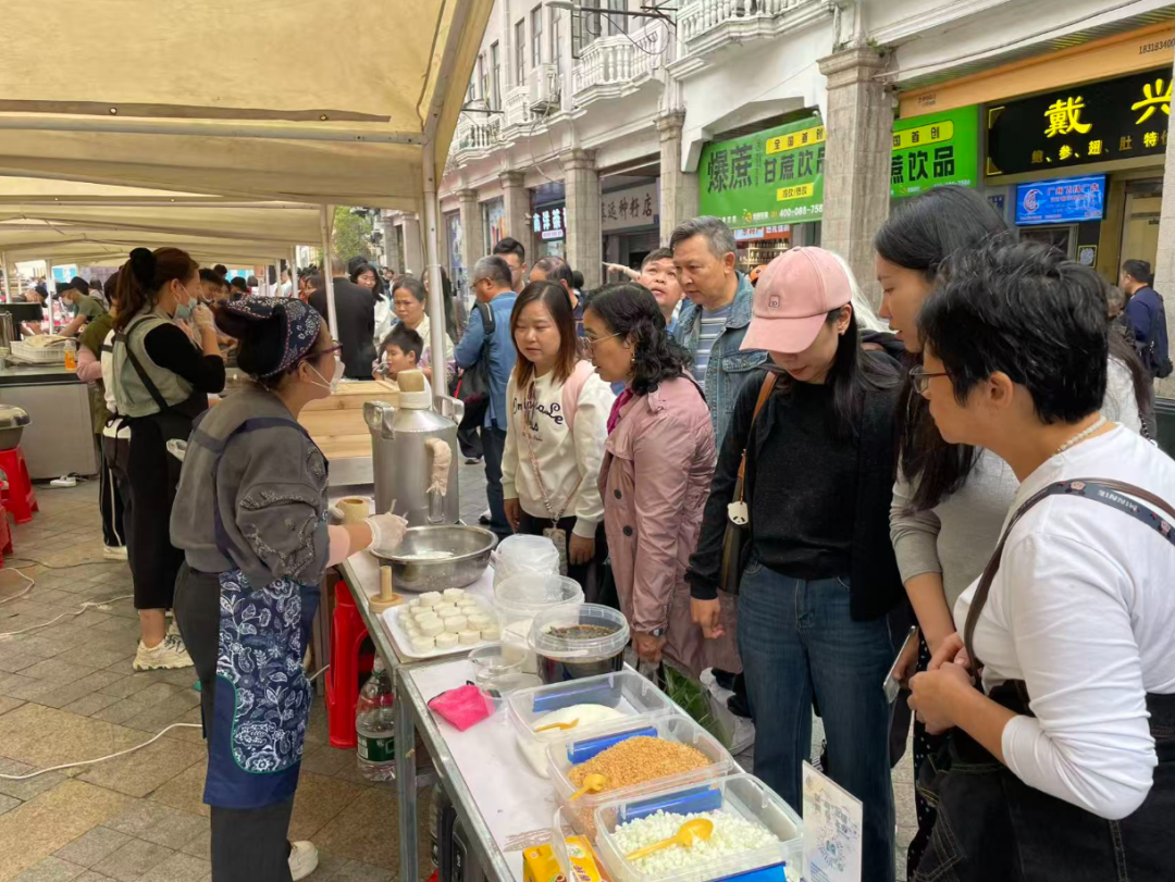 林记甜品的清甜爽口、屯堡烤小肠的焦香醇厚、灌汤猪脚的软糯入味、鸡辣子的鲜辣过瘾……活动现场香气四溢,十余种地道安顺美食整齐陈列,让广州市民一站式解锁黔中风味。除了味觉盛宴,现场还穿插了安顺地戏与民族歌舞,让消费者在大快朵颐之余,沉浸式感受安顺多元文化的深厚底蕴。
