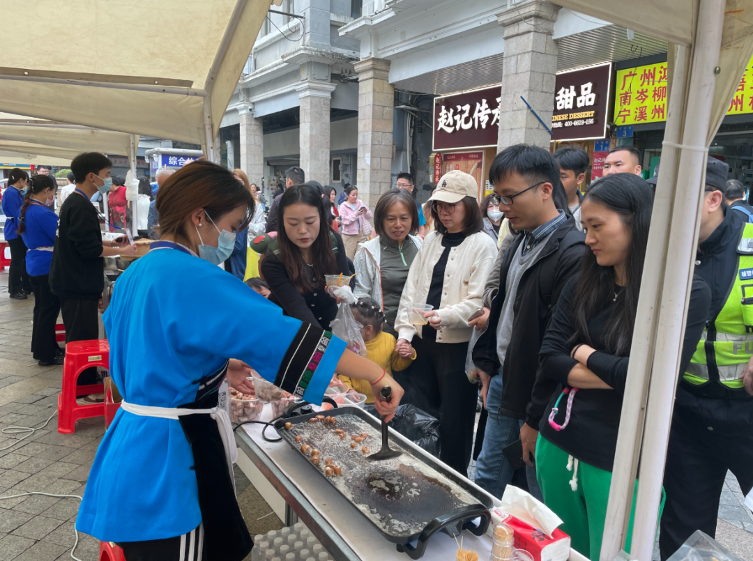 “没想到安顺小吃这么惊艳,味道独特又有特色,还能了解到背后的文化故事,太值了!”刚品尝完屯堡烤小肠的广州市民张协桂连连称赞。