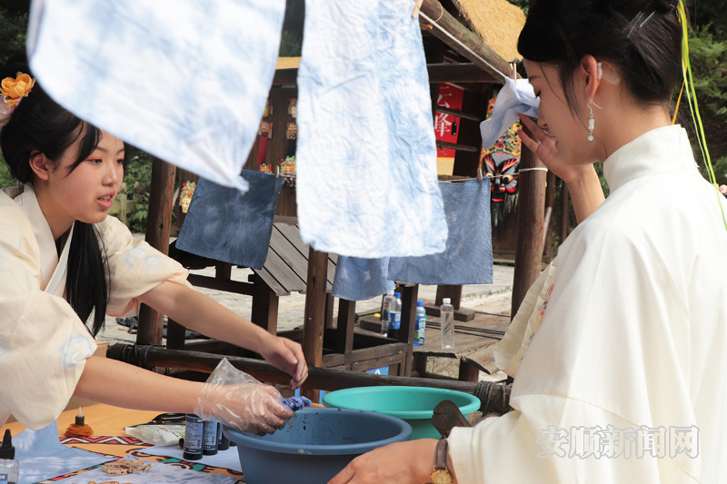游客在云峰屯堡体验蜡染技艺