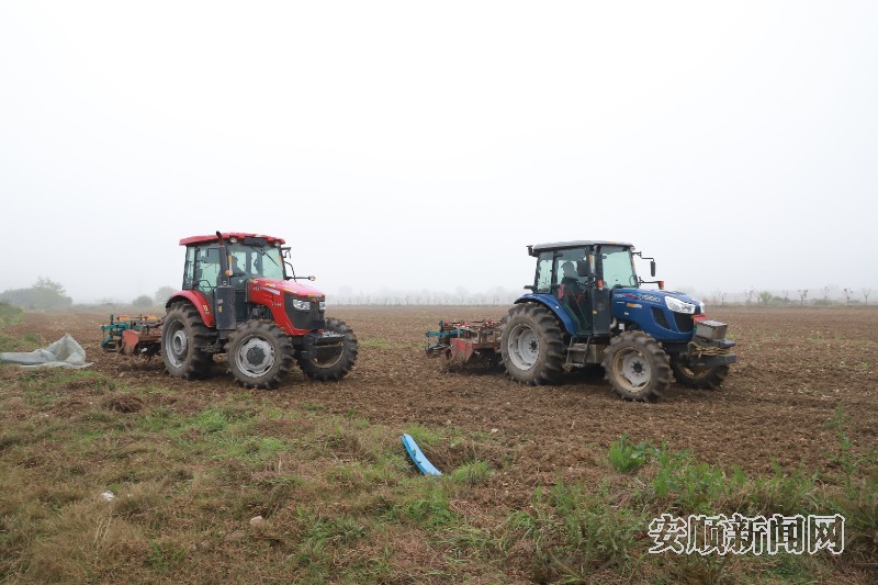 春耕时节,走进平坝区夏云镇小河湾村,平整的土地上,两台播种机正开足马力,在田间穿梭作业。