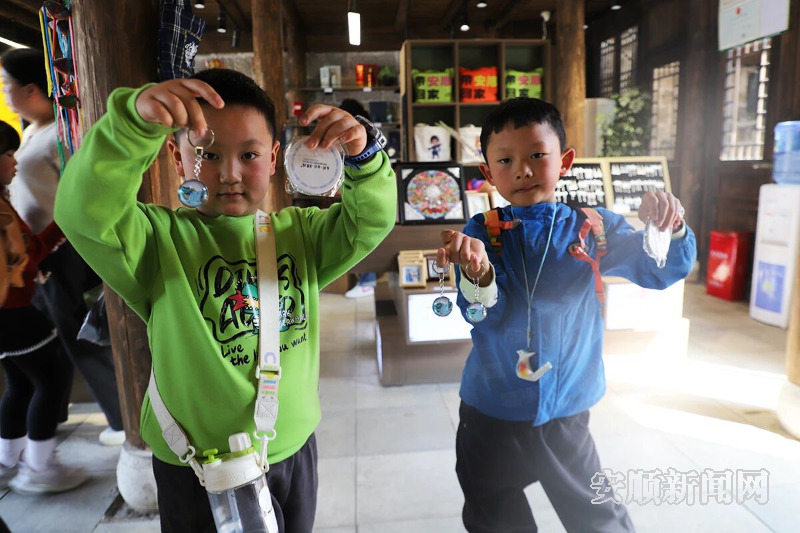 在“把安顺带回家”文创店内,6岁的贵阳小游客黄慕义和小伙伴们认真挑选着文创产品,他姑姑告诉记者:“这些文创把安顺的美和祝福揉在了一起,带回去送给家人朋友,既分享了旅途的美好,也传递了平安顺遂的心愿。正好孩子的爸爸妈妈工作不能来,给他们带上一份属于安顺的记忆。”