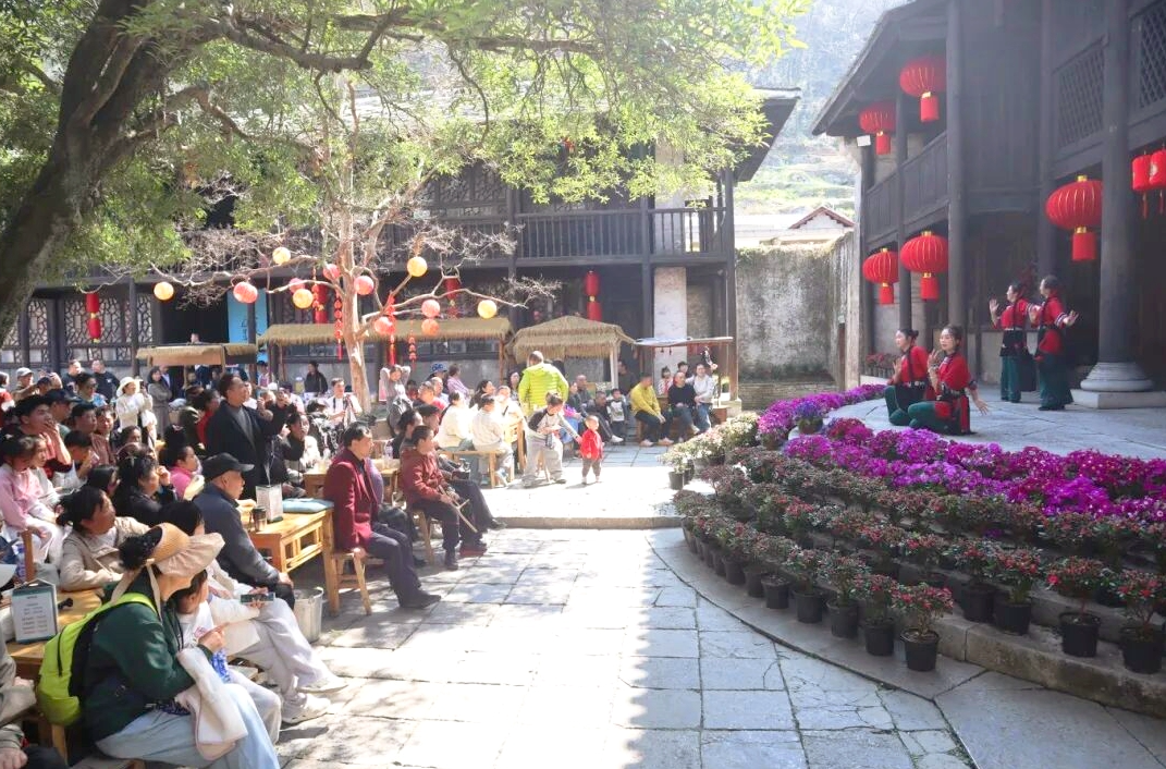 天龙屯堡景区,游客观看屯堡文化表演 桂传念 摄