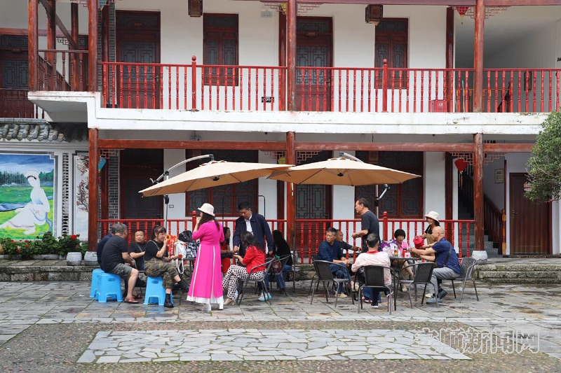 旧州古镇内游客纳凉休憩