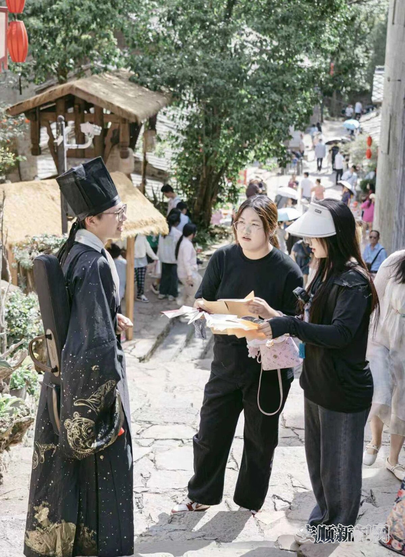 云峰屯堡景区沉浸式剧本杀互动现场,NPC与游客趣味互动。