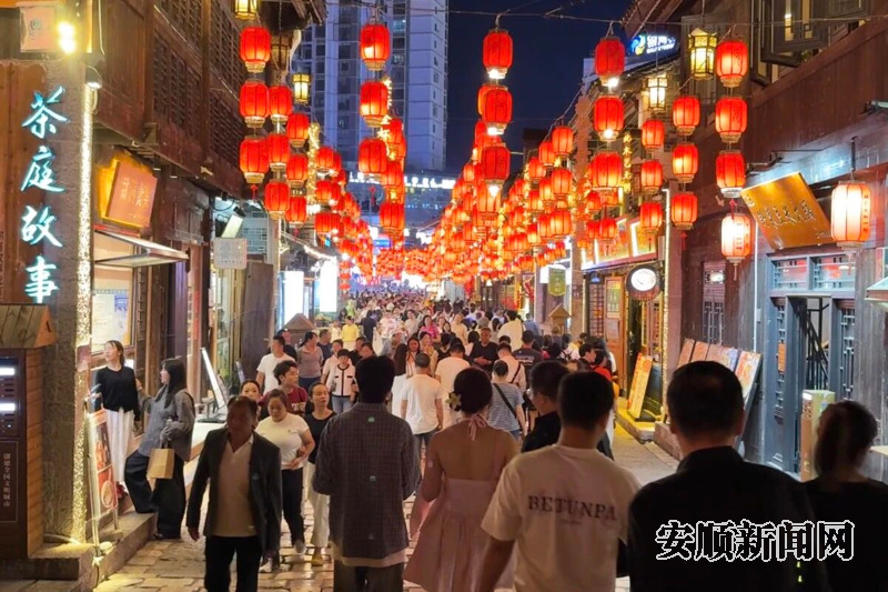 夜幕下的安顺古城灯火璀璨,游人如织。