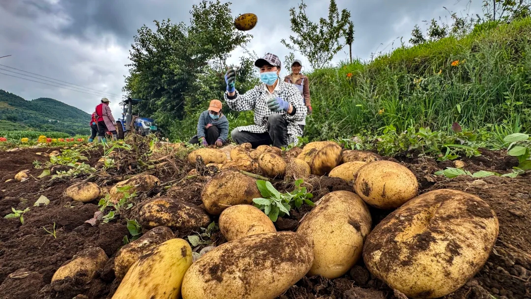 么站镇平原社区群众采收马铃薯(来源:威宁发布)