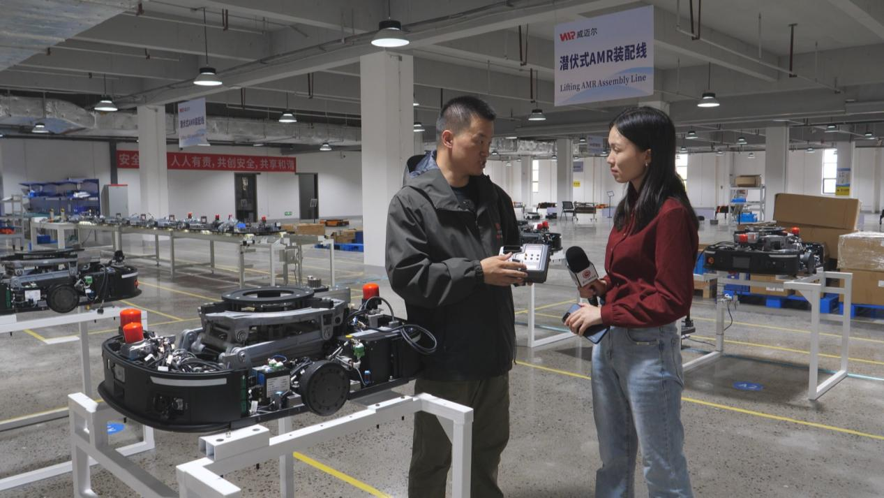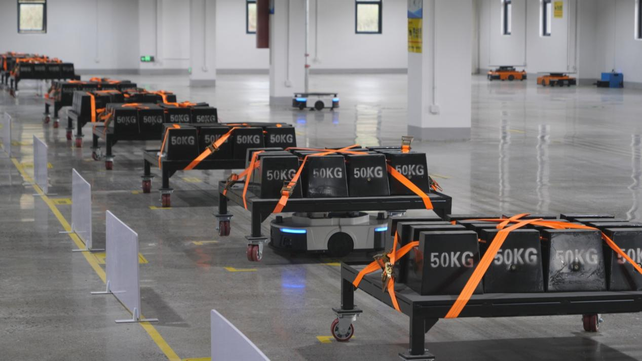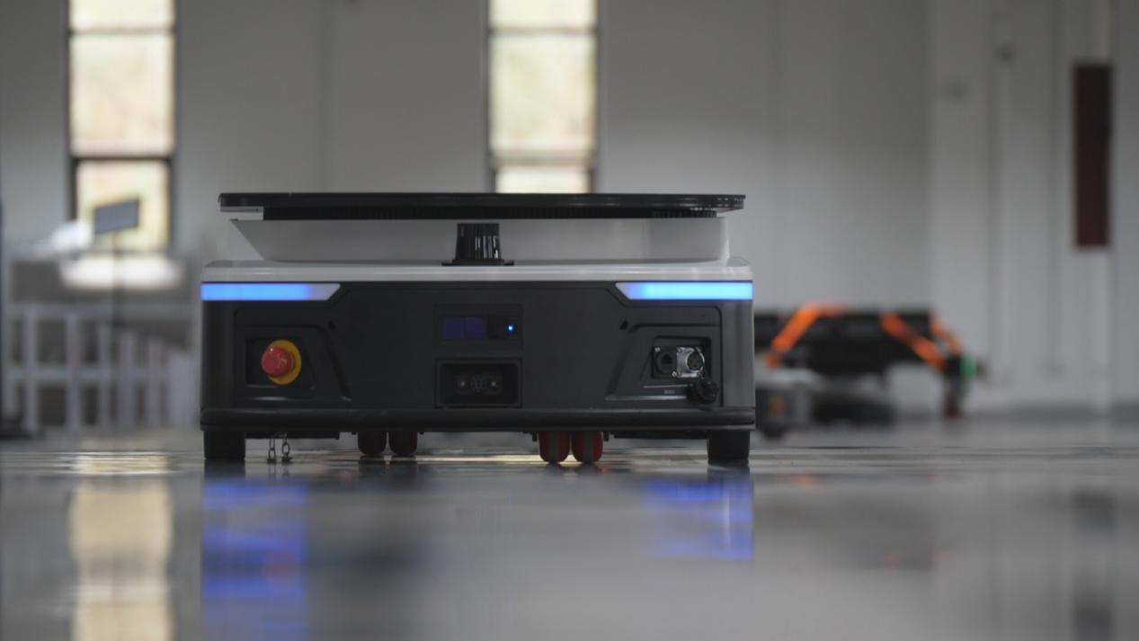 这款移动机器人应用于现代工厂的智慧物流,根据设置的路线精准运输货物,将人们从繁重、重复的搬运工作中解放出来。