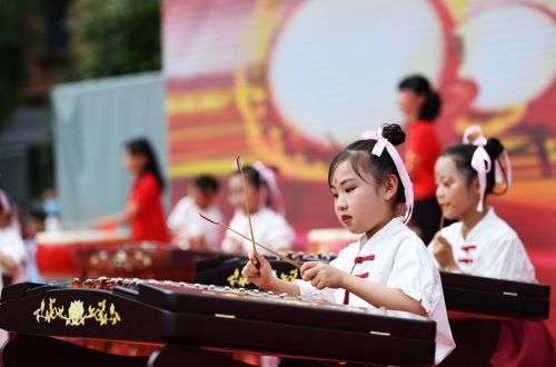 5月25日,贵阳市南明区第二实验小学扬琴社团的学生在学校第二届艺术节展演暨庆“六一”活动现场进行扬琴演奏。