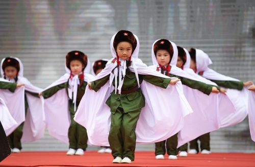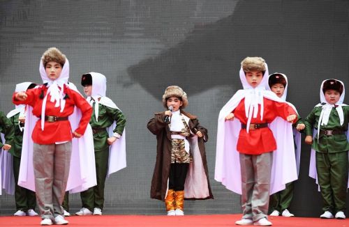 5月25日,贵阳市南明区第二实验小学京剧社团的学生在学校第二届艺术节展演暨庆“六一”活动现场表演京剧《林海雪原》。