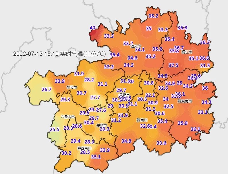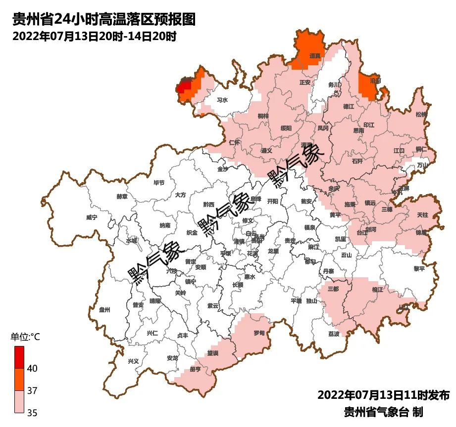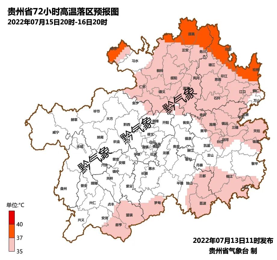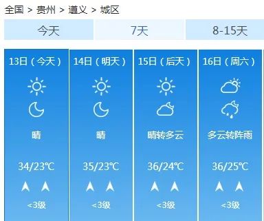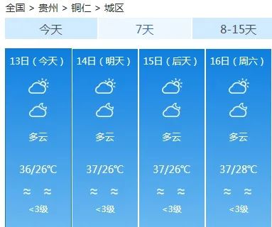 今天夜间到16日白天,全省多云到晴,南部地区局地有分散阵雨或雷雨,铜仁市、遵义市大部、黔东南州大部、黔南州南部边缘、黔西南州东南部边缘午后有35℃以上高温,局地超过37℃,全省大部地区有4-6级偏南风,瞬时风力可达6级以上。