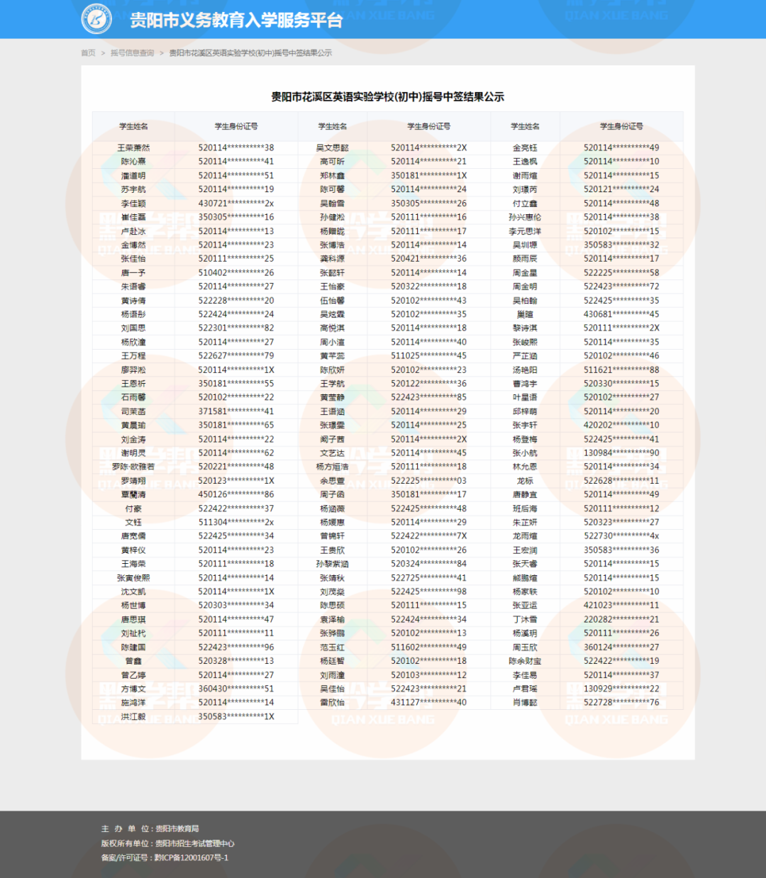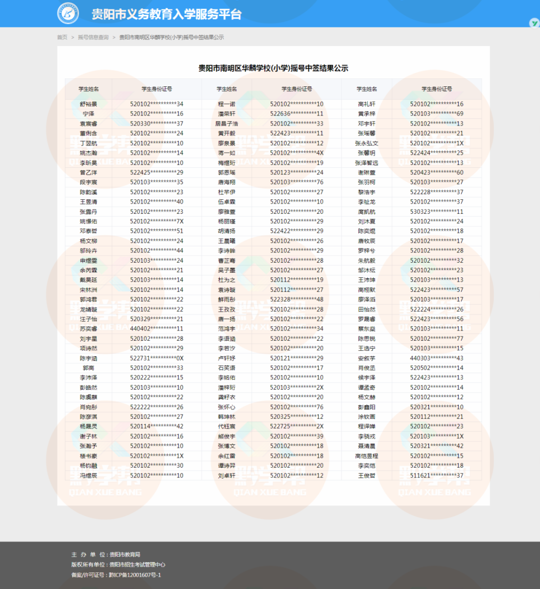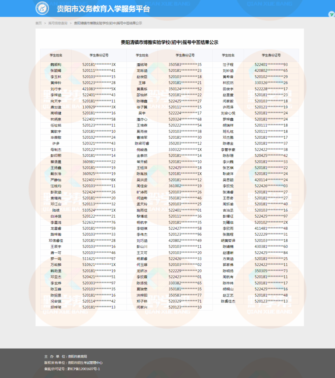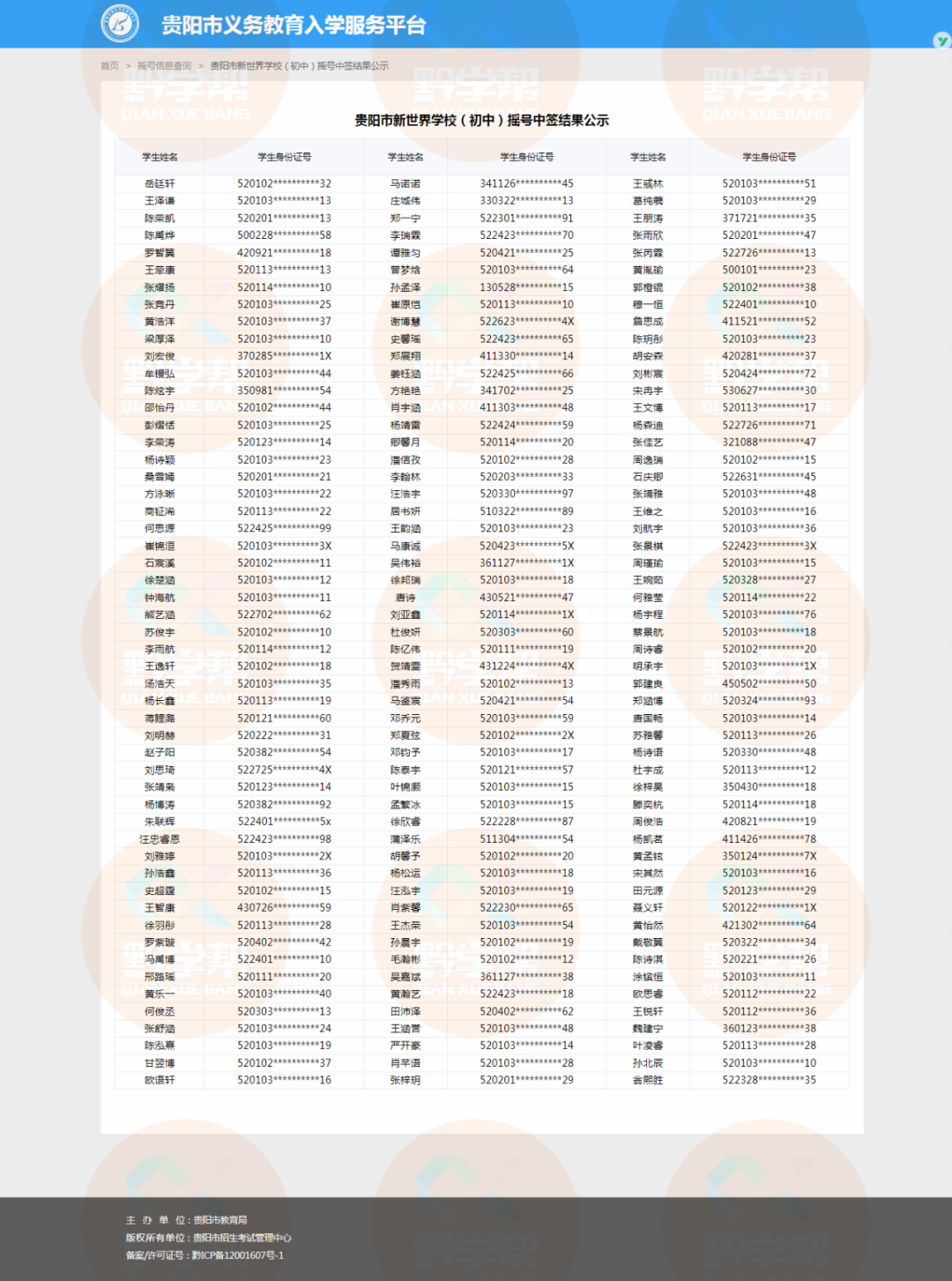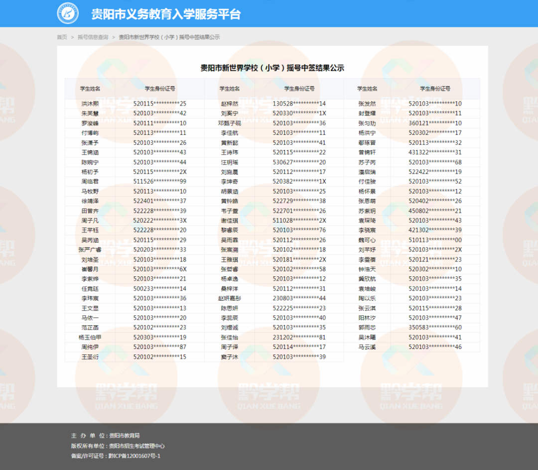 小学电脑随机派位中签名单