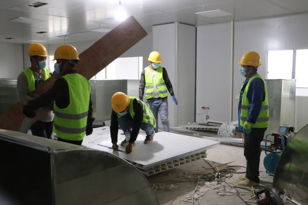贵阳城市建设工程集团有限公司项目经理 邱士凯:贵阳市城市常态化新冠核酸检测实验室项目现有在岗管理人员及作业人员约300人,截止10月8日,项目施工进度已完成80%左右,土建改造及装修已完成70%,玻镁彩钢板墙板及吊顶已安装完成,暖通空调及新风系统已完成90%,强电弱电已完成60%左右,办公家具陆续到场,检测实验设备已运至中转站,预计于本月13号竣工。