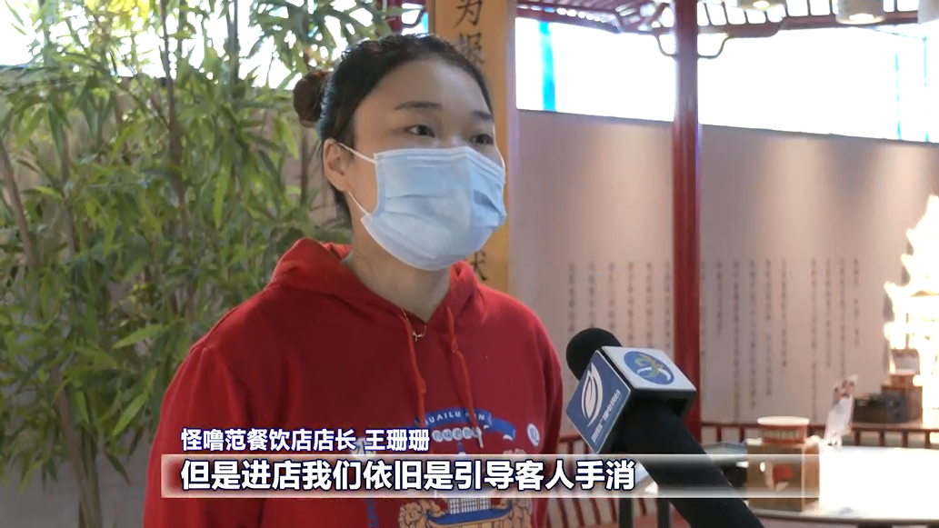 怪噜范餐饮店店长 王珊珊:我们没有再查核酸检测了,但进店依旧是引导客人“手消”及扫场所码才可以进店。