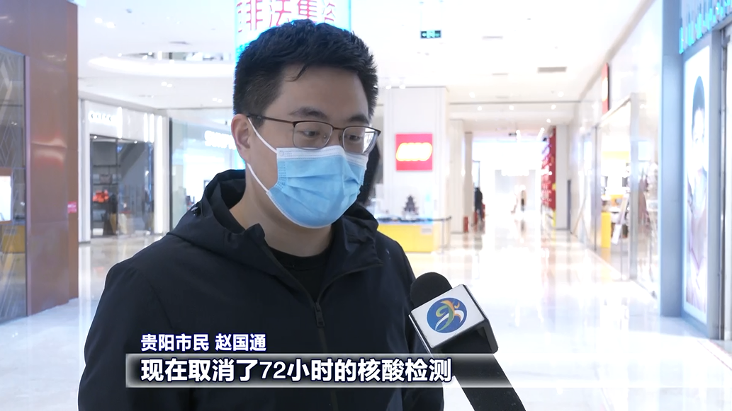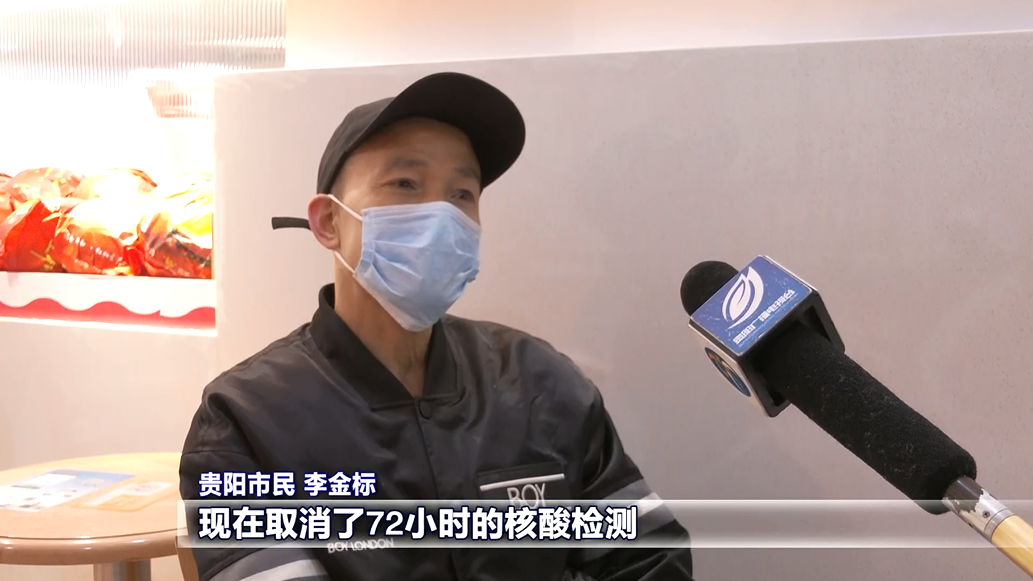 贵阳市民 李金标:现在取消了72小时的核酸检测,这个对市民来讲是很方便的,但是现在出门还是要戴好口罩,做好防疫措施。