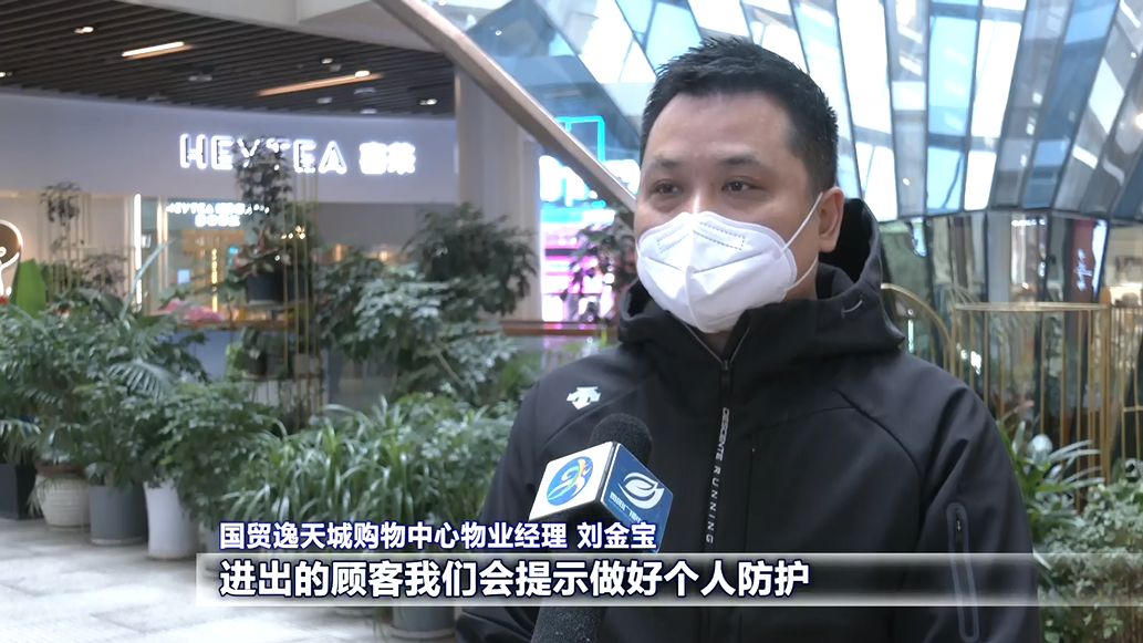 国贸逸天城购物中心物业经理 刘金宝:根据新的疫情防控要求,取消公众场所的72小时核酸检测查验,同时要求出入的顾客出示场所码,进出的顾客我们会提示做好个人防护,积极配合疫情防控。