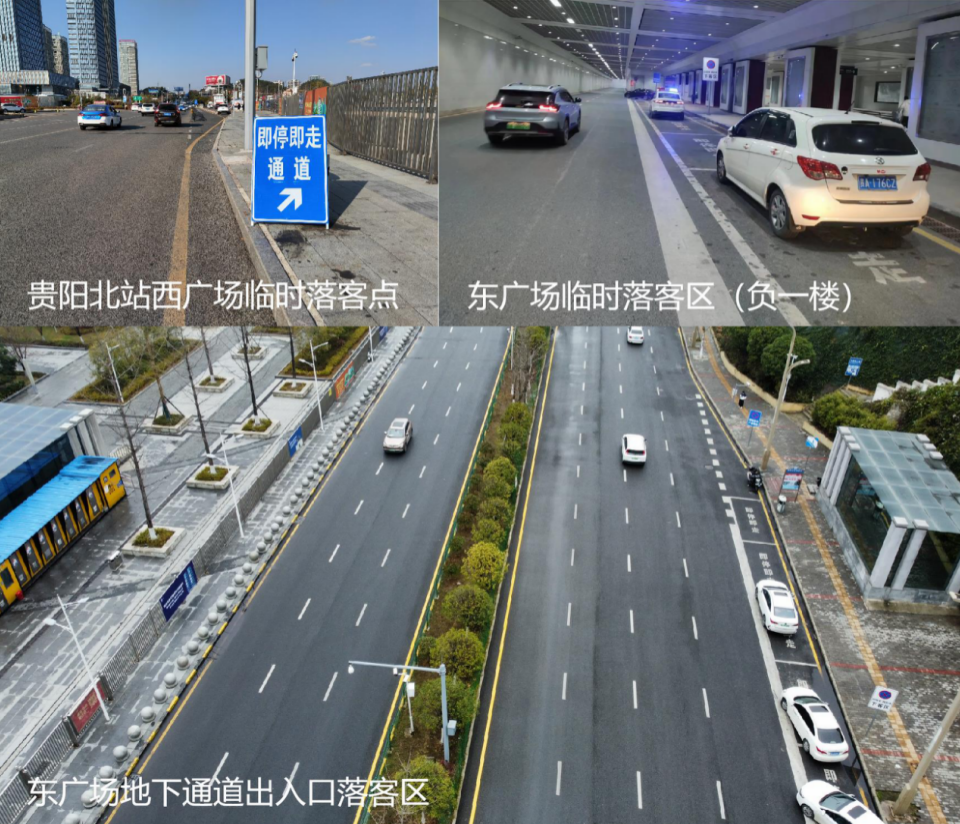 实际上,除了北广场和东广场落客平台,贵阳北站还有多个既可以避免上匝道拥堵,又能够快速到达的便捷落客点。分别是贵阳北站西广场临时落客点、东广场临时落客区(负一楼)和东广场地下通道出入口落客区。以上落客区均不用上匝道往北站高架,送站车辆靠边落客后即停即走,无论是送亲友还是打车到站,都方便快捷。