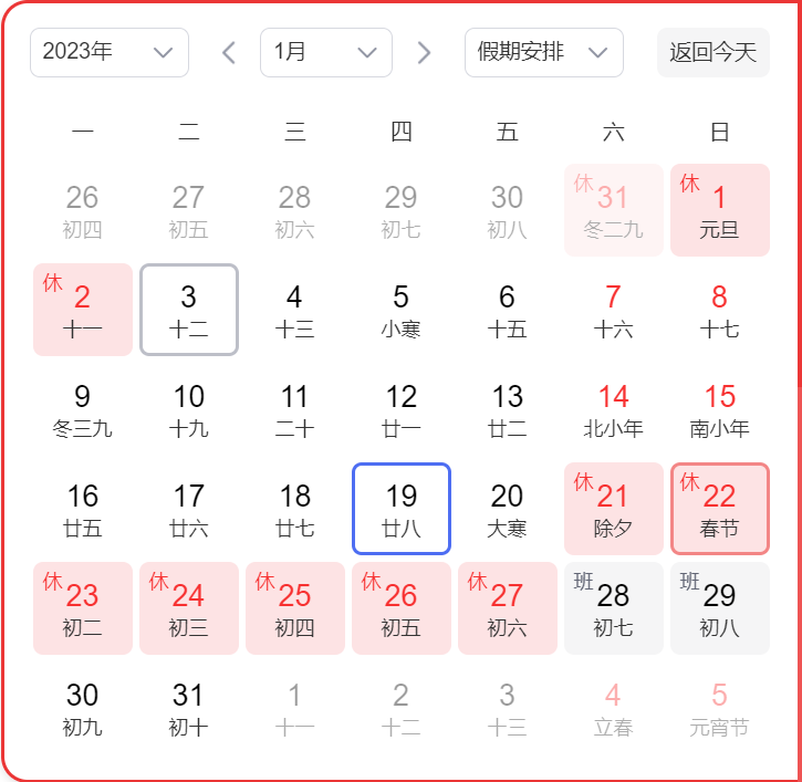 2023年春节长假从1月21日(除夕)开始,至2023年1月27日(正月初六)结束,共7天。