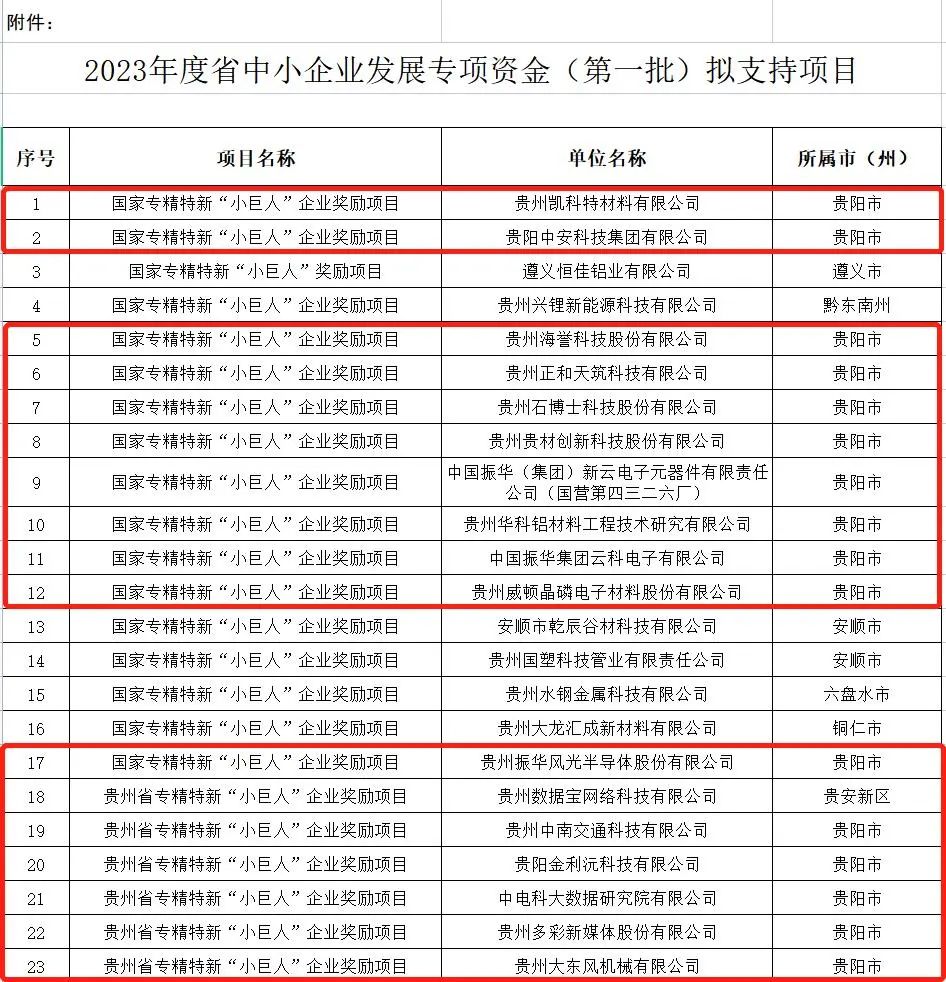 根据《省工业和信息化厅关于做好2023年省级财政专项资金储备项目入库申报工作的通知》要求,经自愿申报、地方推荐等程序,拟支持贵州凯科特材料有限公司国家专精特新“小巨人”企业奖励、贵州省工业和信息化发展研究院贵州省中小企业公共服务示范平台等74个项目,现予公示(见附件)。公示期为2023年5月4日-5月9日。公示期间,如有异议,请及时与省工业和信息化厅联系,联系电话:0851-88668175、88668174。