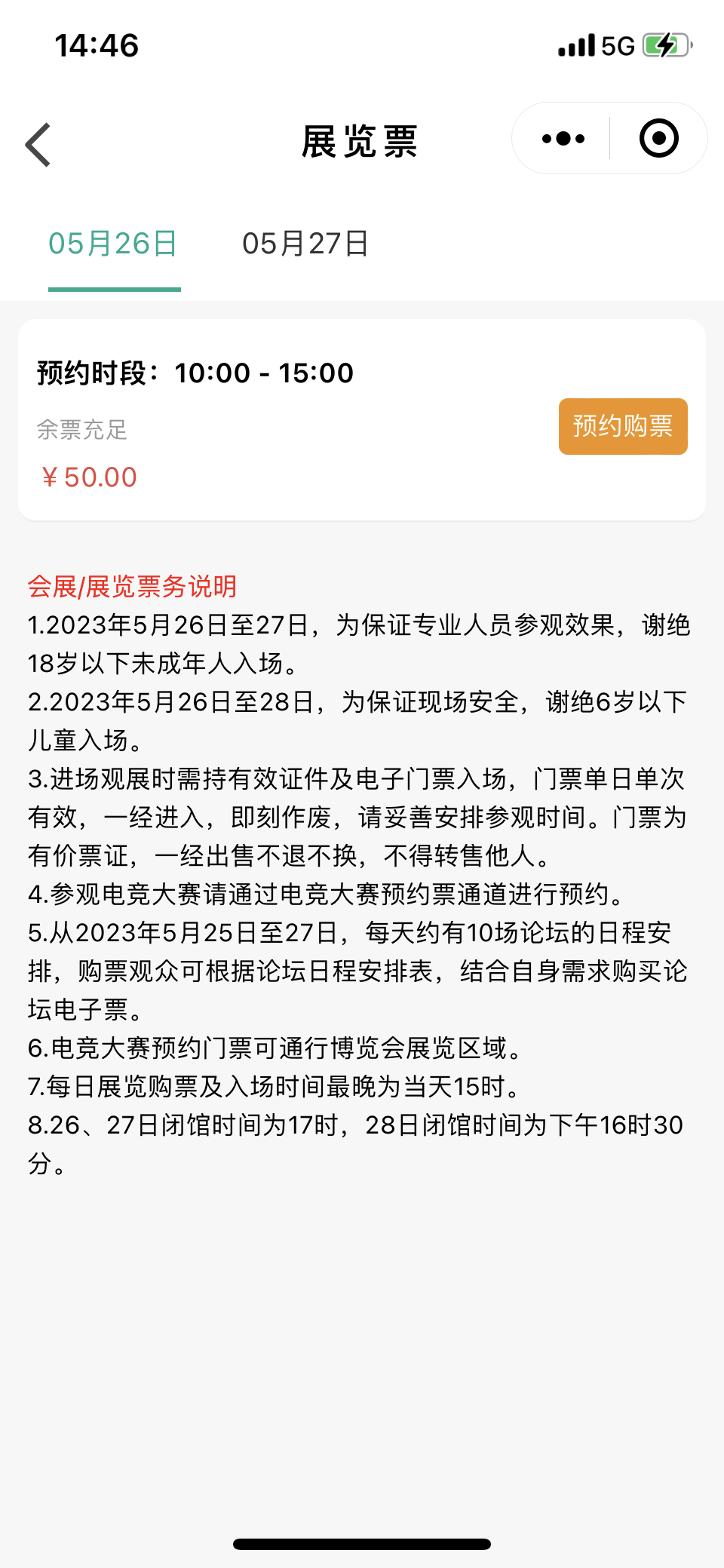 展览专业观众门票与E3电竞馆门票均为50元一张,单次有效,电竞馆门票总数18000张,可通行博览会展览区域;论坛门票方面,5月25日至27日,每天约有10场论坛的日程安排,每日售票数量有限。分全天门票 800元/张、半天门票(5月26日下午)500元/张、论坛三日通票 1500 元/张共三个等级,5月16日-17日论坛门票可享8折优惠,购买门票后可参加门票有效期内的展览活动,多次有效。
