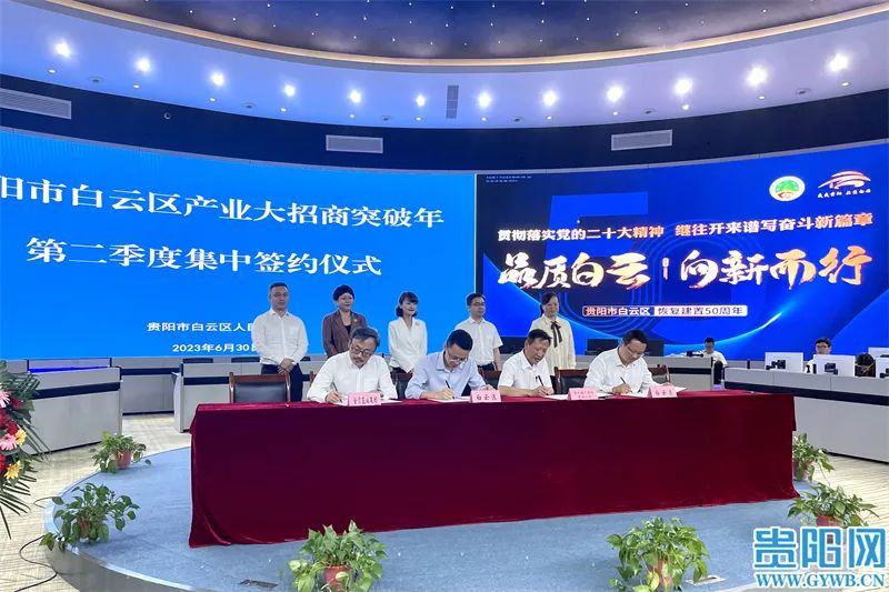 6月30日,2023年贵阳白云区产业大招商突破年第二季度集中签约活动在白云区智慧白云指挥中心举行。本次活动涉及签约项目14个,涵盖电子信息制造、生态食品等白云区“一主一特”产业领域以及中高端制造、大数据产业等重点领域,总投资额达29.65亿元,白云区加快新型工业化助推“强省会”又添新动能。