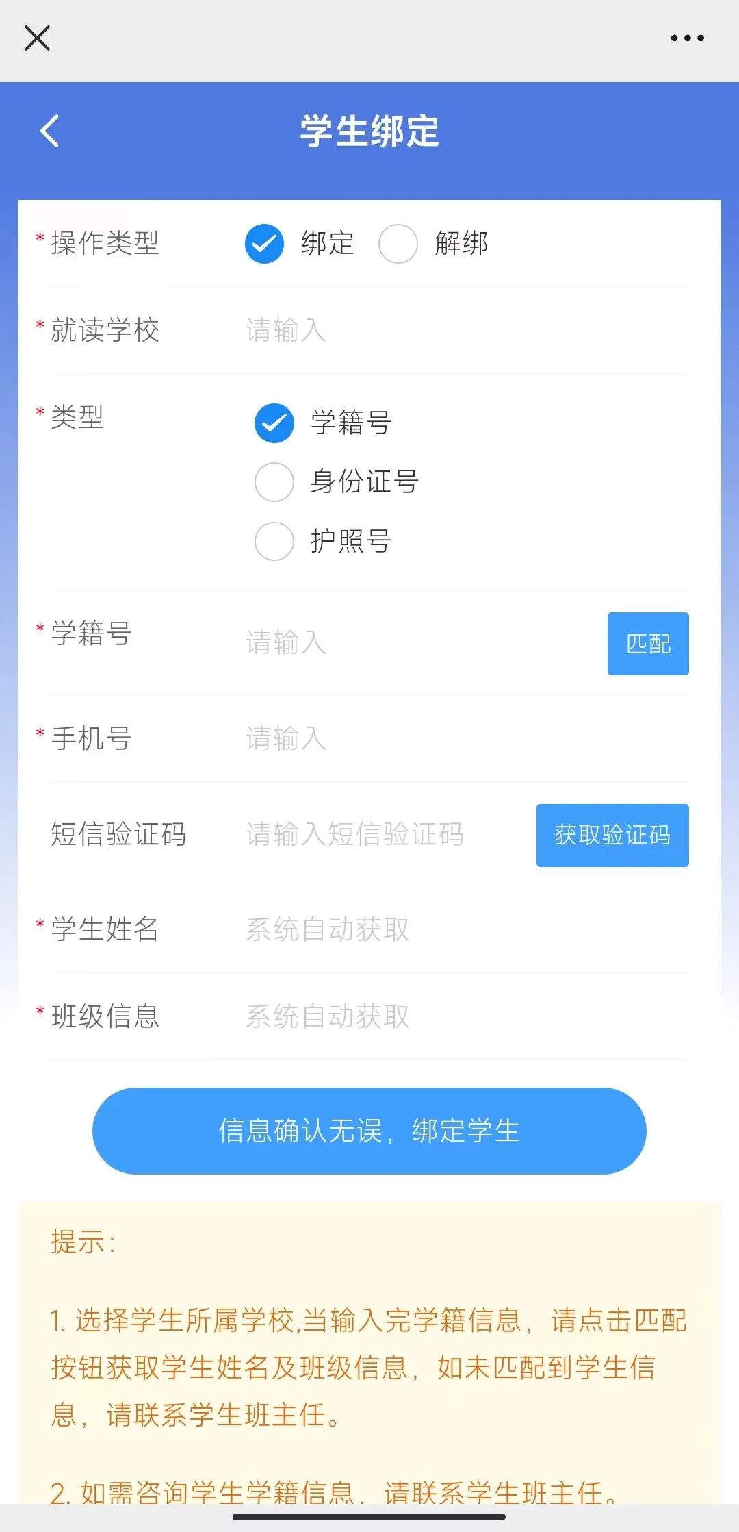 注:记住学籍号,如需再次登录可直接短信验证登录。