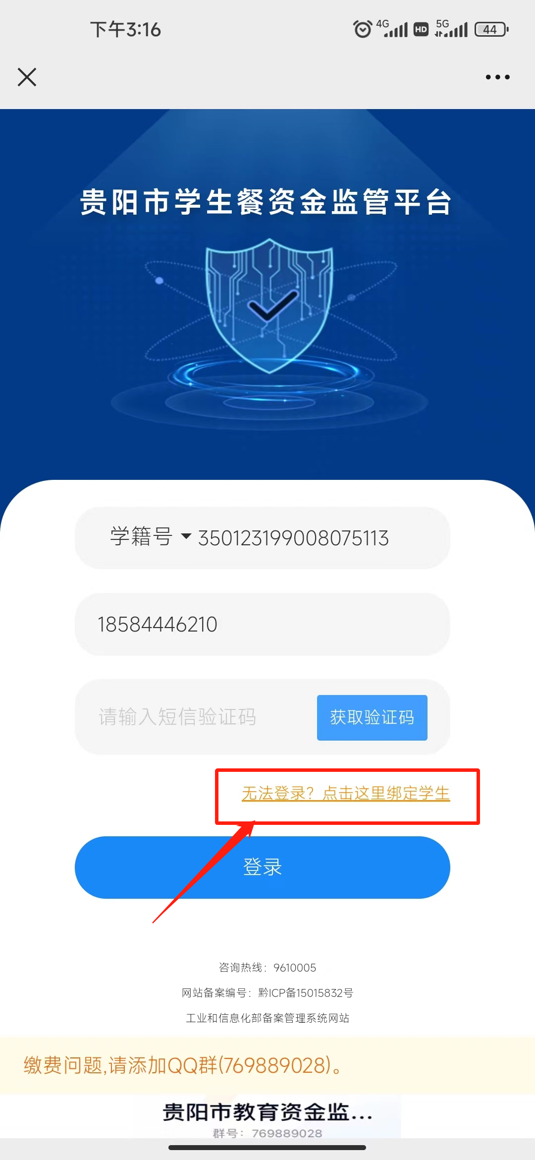 在贵阳市学生餐资金监管平台缴费需要注册,已经注册的可以跳过这个步骤。