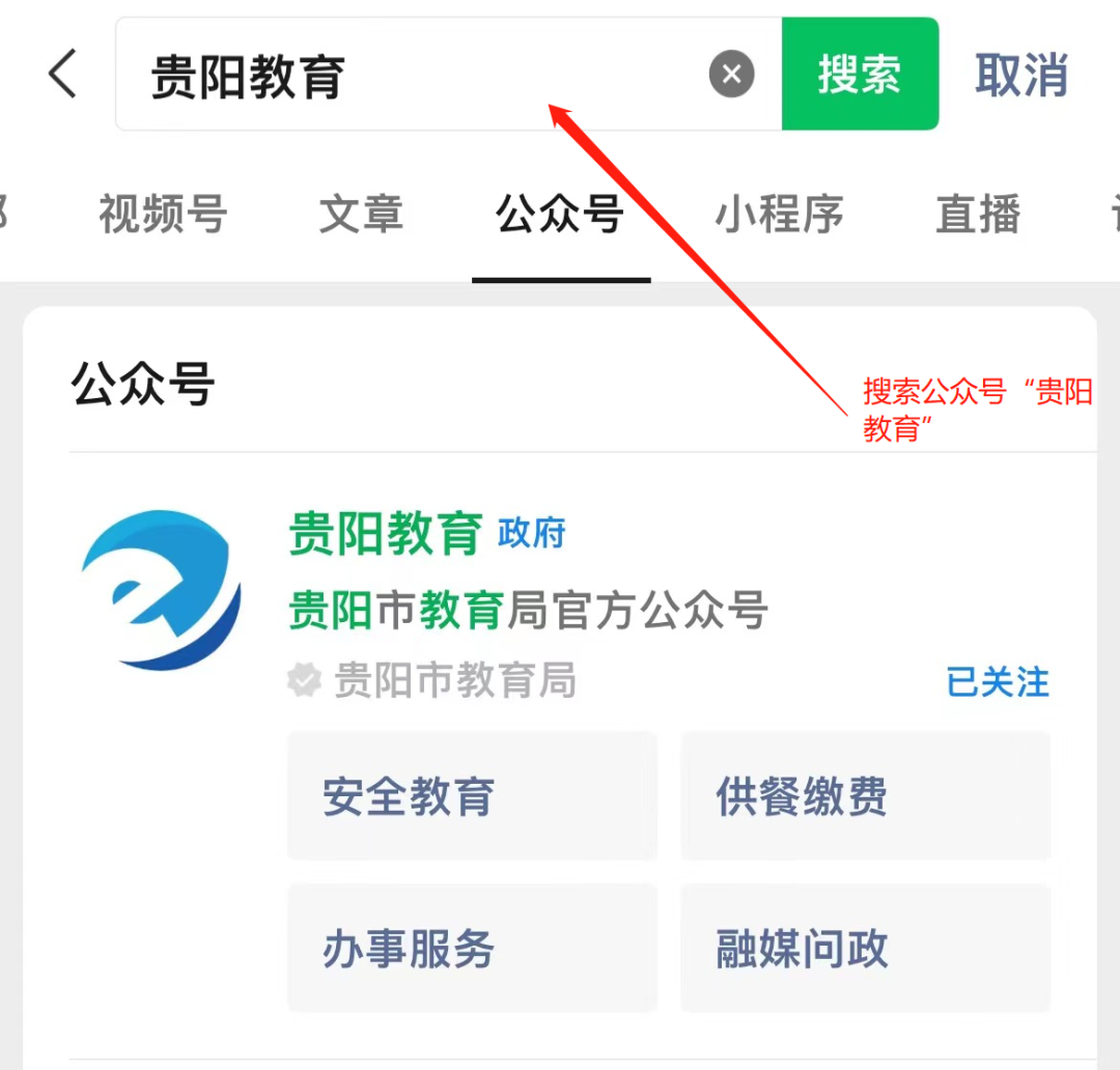 打开微信,搜索【贵阳教育】公众号,点击“供餐缴费”,输入学生学籍号、亲属手机号、验证码登录,在“已缴费”一栏,可查询已缴费信息。