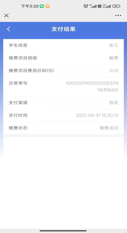 若家长重复缴费,可向班主任提供重复缴费记录,班主任统一将缴费记录发给学校相关负责人审核,审核无误后该负责人向系统提交退费申请,系统将于次月10日-15日原路退回费用。