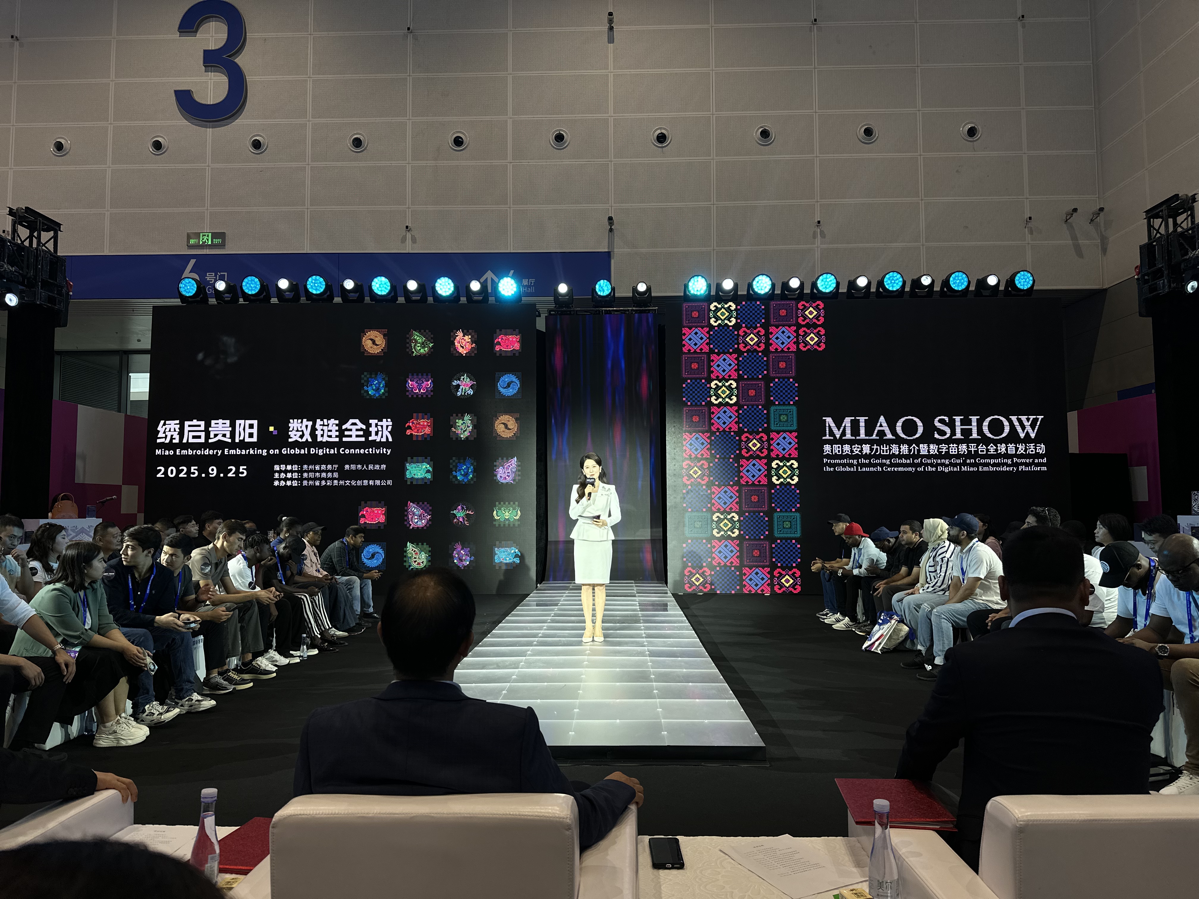 活动上,数字苗绣平台全球首发成为亮点。据介绍,数字苗绣平台即苗绣产业融合数字化平台,通过构建苗绣“两库一平台”——纹样库、绣娘库及苗绣全球设计师平台,以数字化手段实现非遗资源的永久性保护、活化利用与全球共享,为文化出海奠定坚实资源基础。“作为连接非遗与时尚的桥梁,‘数字苗绣平台’将以数字化与系统化的方式,激活苗绣的当代表达,让苗绣从‘指尖技艺’走向‘数字经济’,让更多人看到苗绣的美,也让苗绣在现代生活中焕发新活力。”多彩贵州文化创意有限公司相关负责人说道。