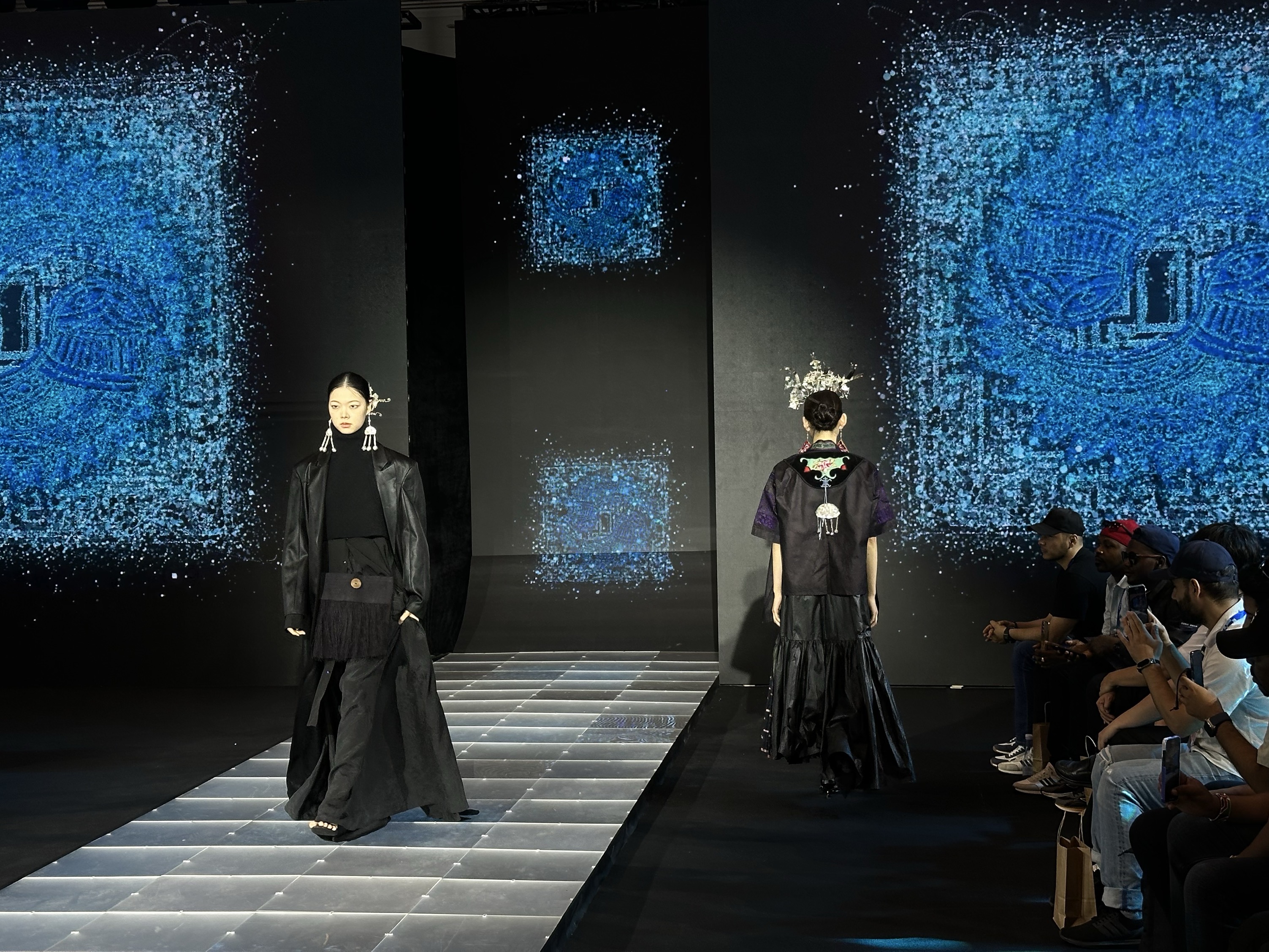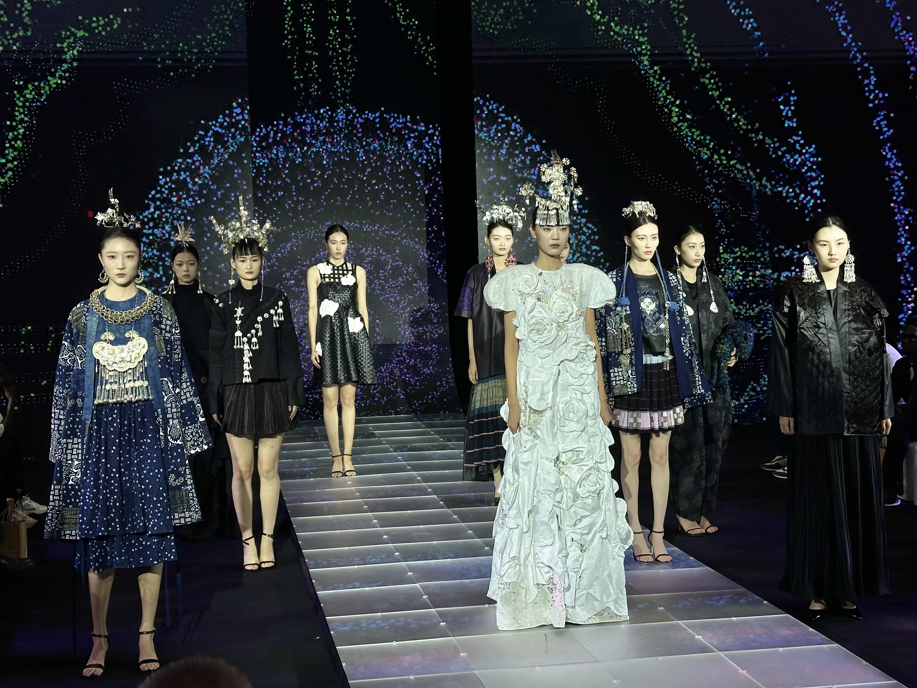 为全方位、立体化展示苗绣数字化保护与创新应用,活动中,国际知名设计师劳伦斯·许与贵州工业设计城运营总经理揭屯分别从国际时尚视角和产业运营角度带来苗绣纹样等元素的时尚运用分享。活动现场还设置了沉浸式主题展区与前沿时装发布环节,通过静态陈列传统苗绣纹样、数字转化成果及联名文创产品,并结合以苗绣元素为核心灵感、融合现代设计语言的动态时装走秀,生动呈现传统文化在数字时代的创新表达与时尚活力。