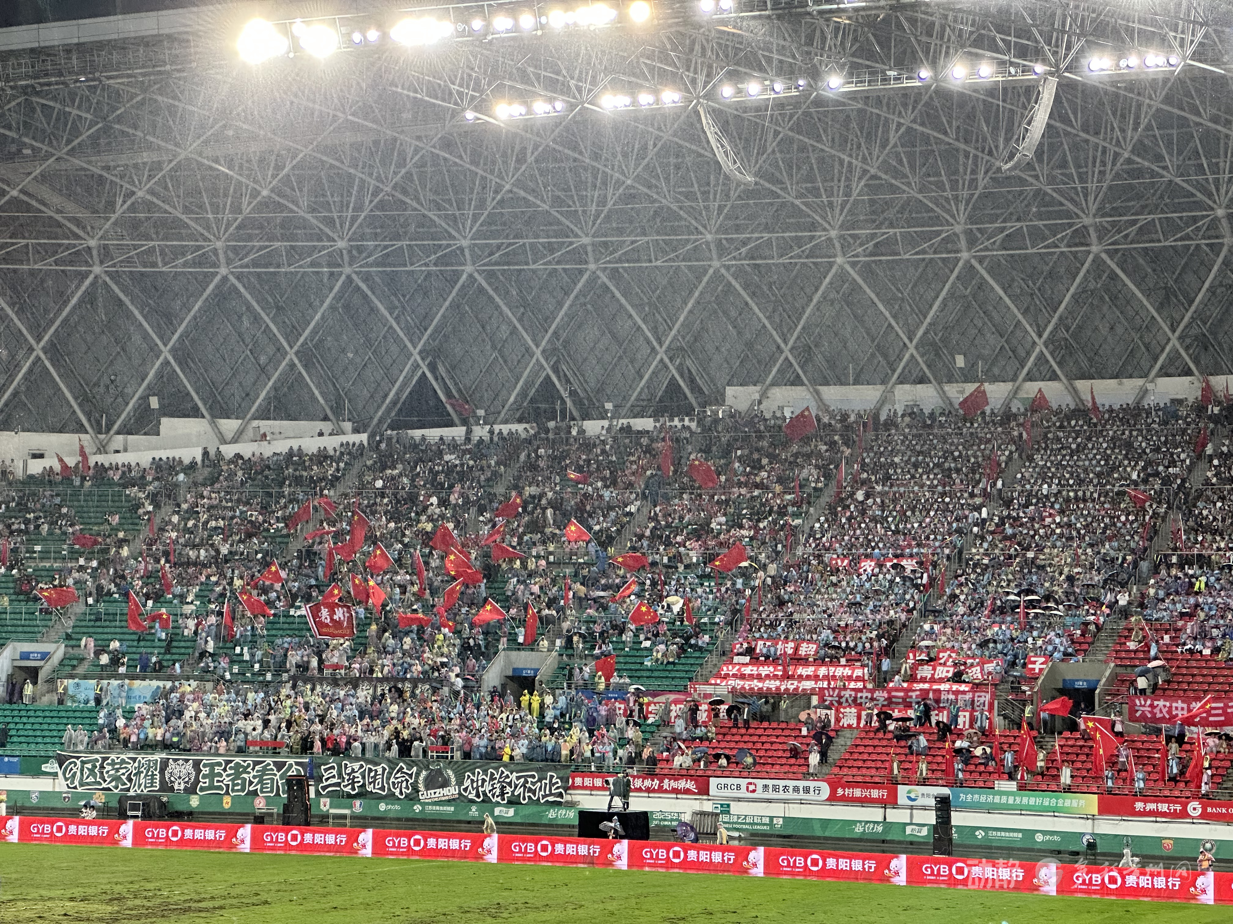 今天(9月25日)晚上,在贵阳奥体中心进行的贵阳“城超”(2025城市足球邀请赛)总决赛中,贵阳咖啡队1:0战胜北海公仔饭店足球队,争夺“城超”冠军。