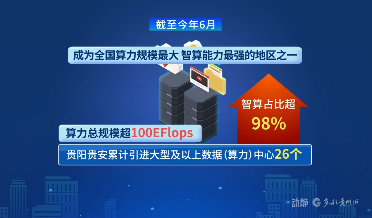 数据显示,截至今年6月,贵阳贵安累计引进大型及以上数据(算力)中心26个,算力总规模超100EFlops,智算占比超98%,成为全国算力规模最大、智算能力最强的地区之一。