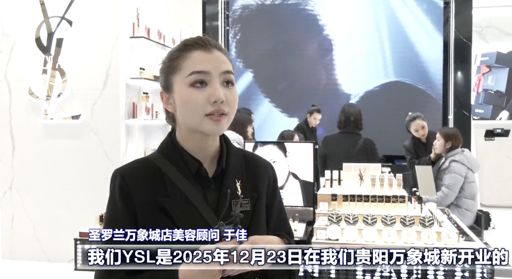 圣罗兰万象城店美容顾问于佳:我们YSL是2025年12月23日在贵阳万象新开业的,人流场场爆满,我们的业绩是非常突出的,现在也是万象城美妆区TOP1。