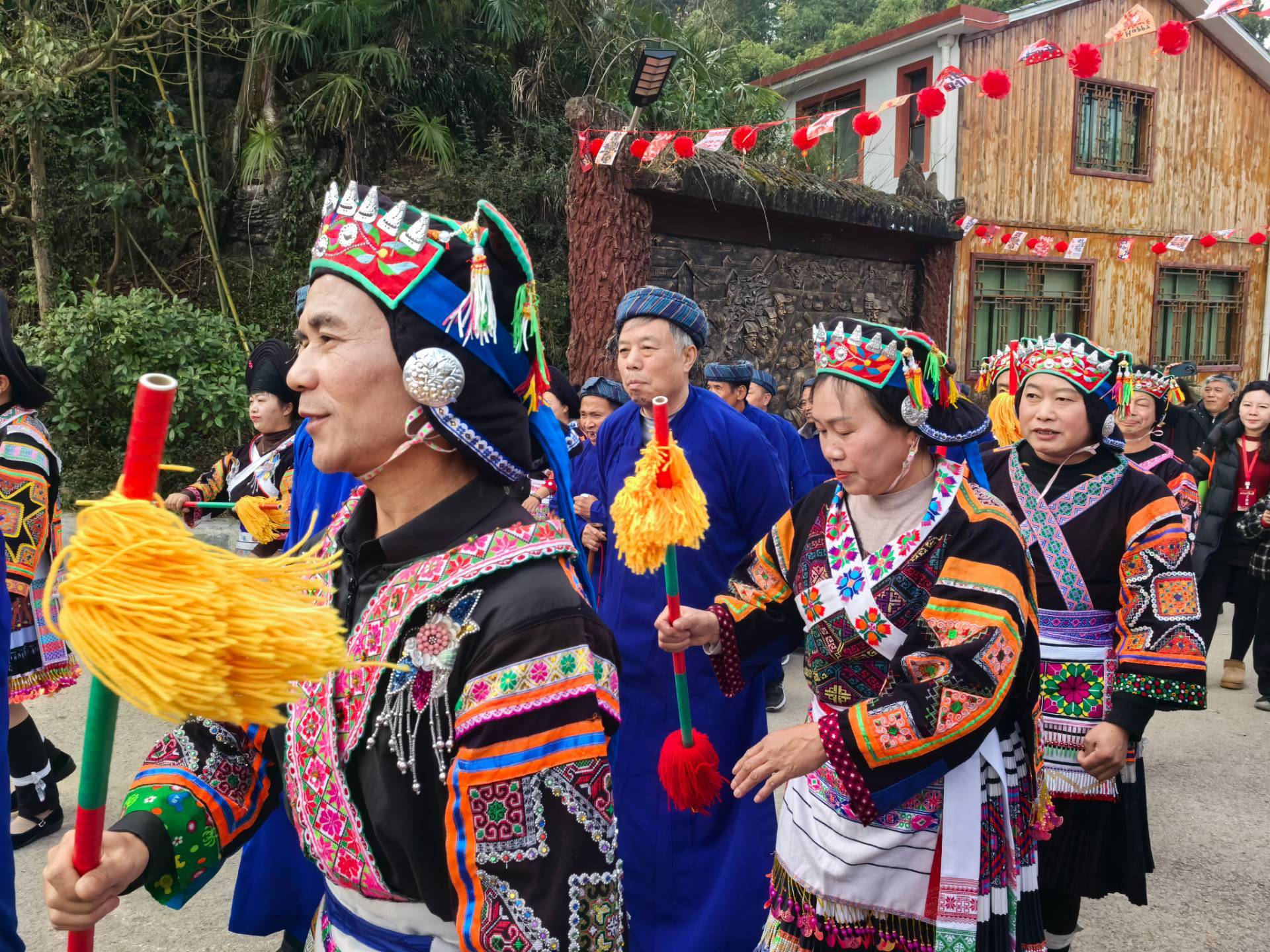 以“玻璃民宿观云海+苗家美食+非遗体验+富硒年货采购”为载体,让游客告别城市拥挤,在苗寨风车云海下住特色民宿、吃杀猪宴、玩非遗手工、跳芦笙舞,将年味扎根山水,把乡愁融入团圆。体验牌坊村李冲组石头田集市。