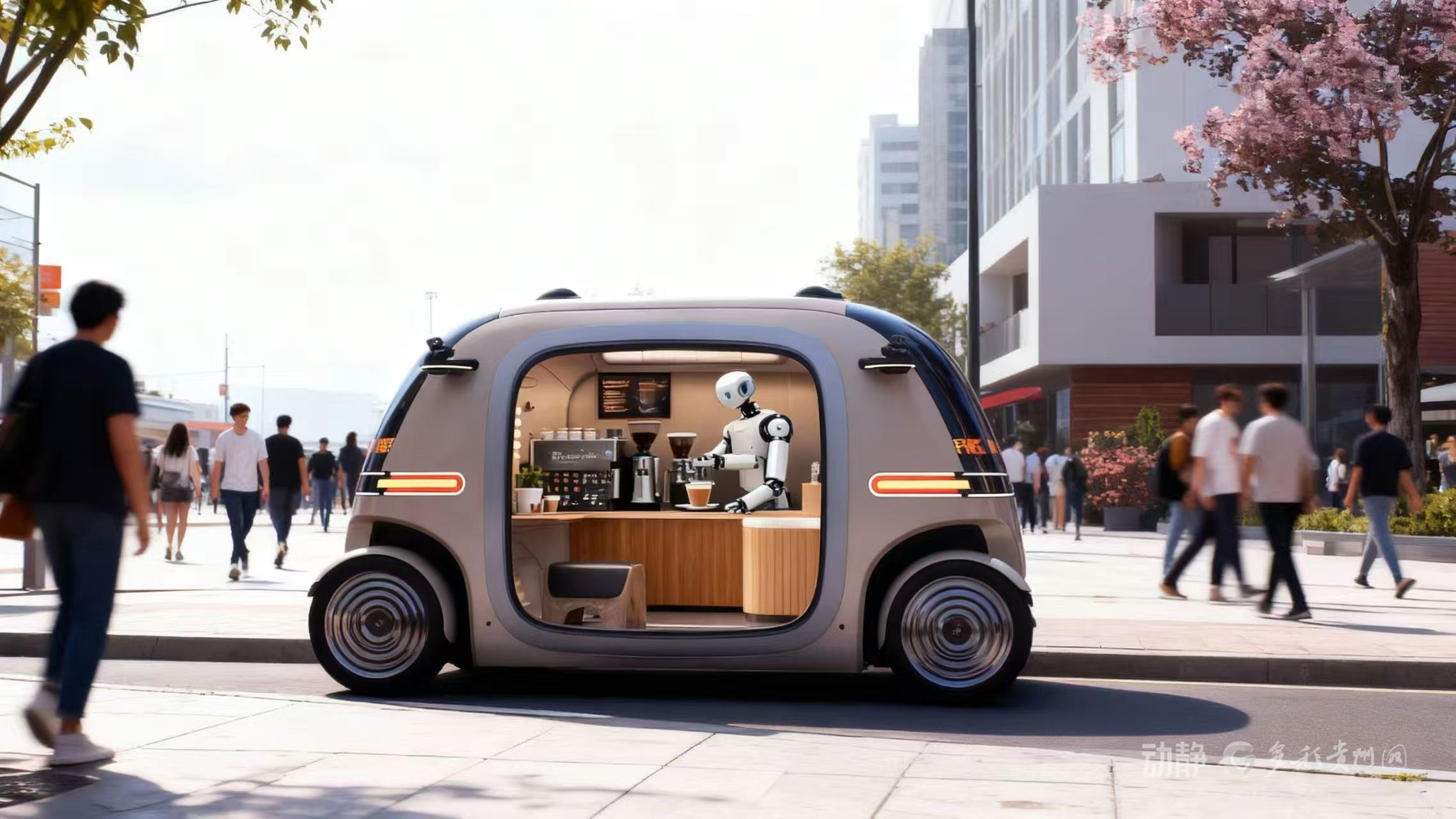 也正是这份“灵活与智能”,让这次移动咖啡体验空间有了落地的可能。不同于传统咖啡店的固定门面,这座“会移动的咖啡店”,把自动化咖啡系统搬进无人驾驶小巴,将咖啡制作、自动售卖与移动场景完美融合,彻底颠覆了“人找店”的传统模式——不用特意绕道寻觅,小巴会带着满车醇香,循着人流热力图主动找到顾客,把一杯杯温热的咖啡,送到每一个需要的人身边。