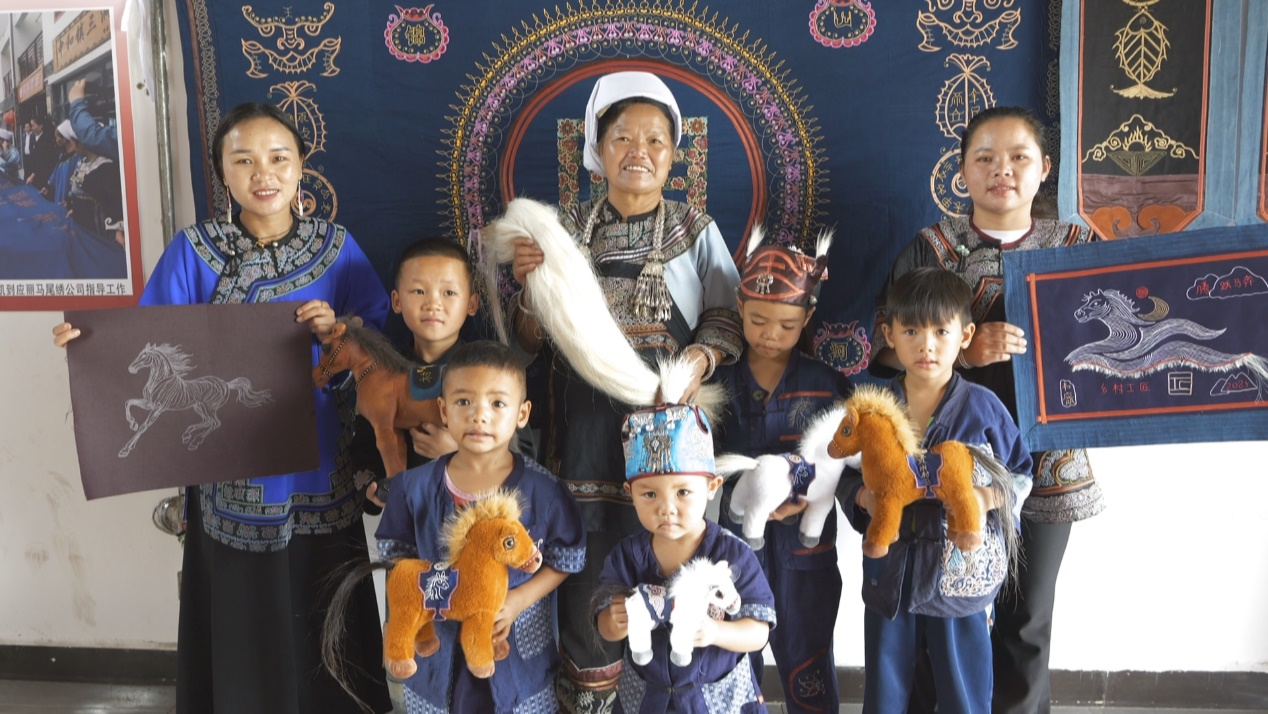 除了“马背上的较量”,国家级非遗马尾绣成为了水族人与马的另一种牵绊。千百年来,水族妇女用缠绕了彩色丝线的马尾毛进行刺绣,如今,她们纷纷将贵州“村马”的元素运用在创作中。