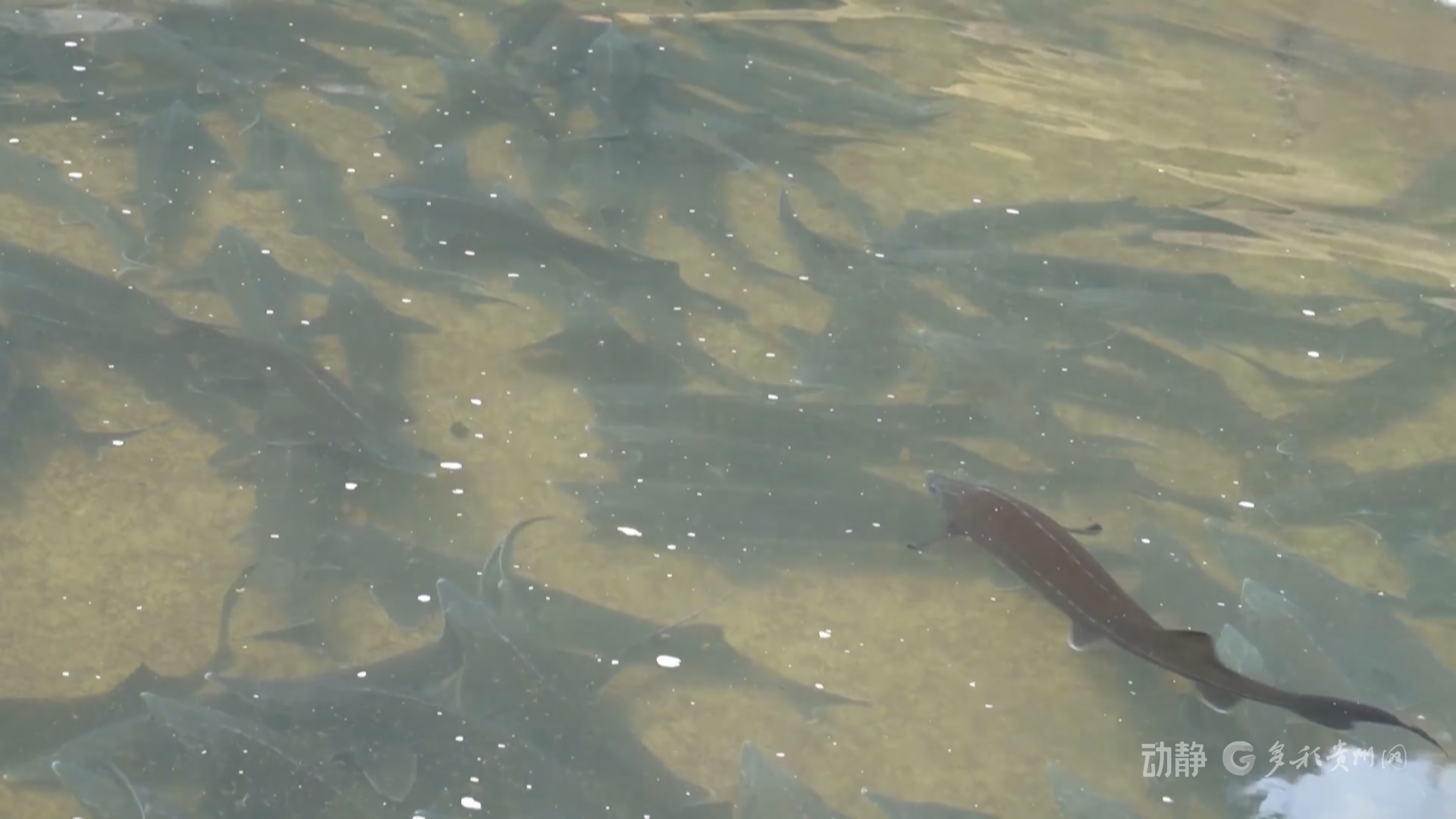 走进龙里县洗马镇龙场村鲟鱼养殖基地,30个标准化鱼池依山而建。今年3月投放的首批15万尾鲟鱼苗,截至目前,产量稳定在50多万斤。