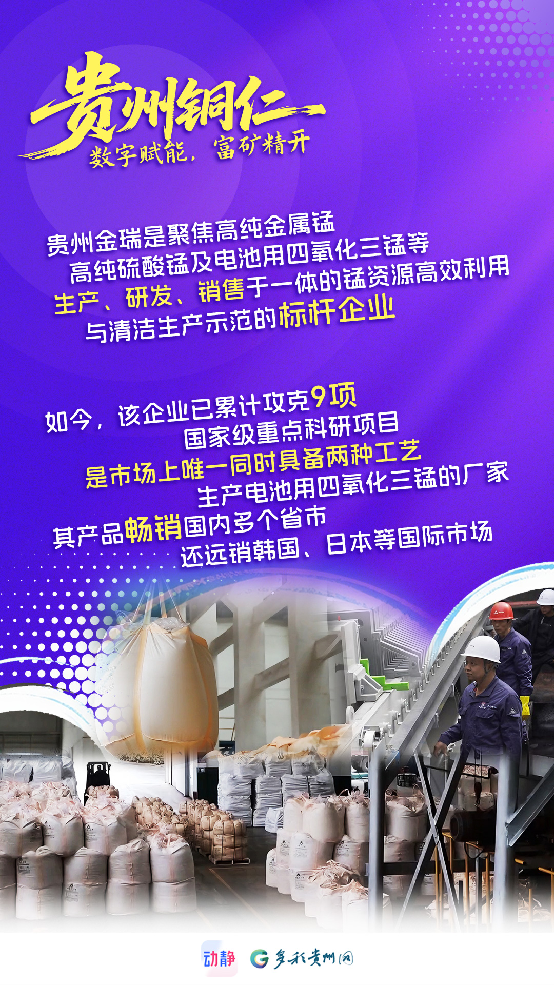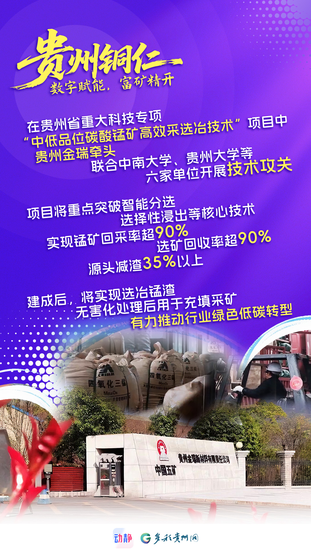 “十四五”时期,铜仁新探勘锰矿资源量1.04亿吨,探明储量超8亿吨。新质生产力迅猛发展,推动锰资源开发向高端化、绿色化转型。