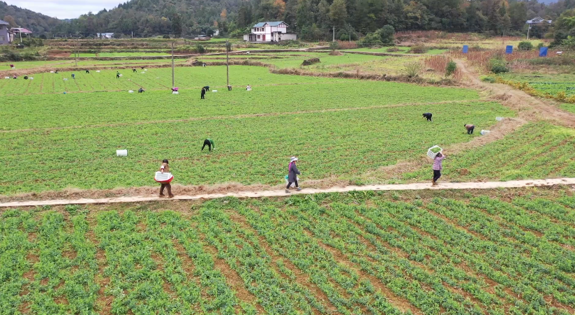 在余庆县松烟村,连片种植的豌豆尖宛如绿色海洋。这种“短平快”作物采收期长,从10月持续至次年3月。种植大户李勇规模化种植的900亩基地,不仅填补了冬季农业空白,还带动上千村民临时就业,预计为村民增加务工收入100万元,让“务工顾家两不误”成为现实。