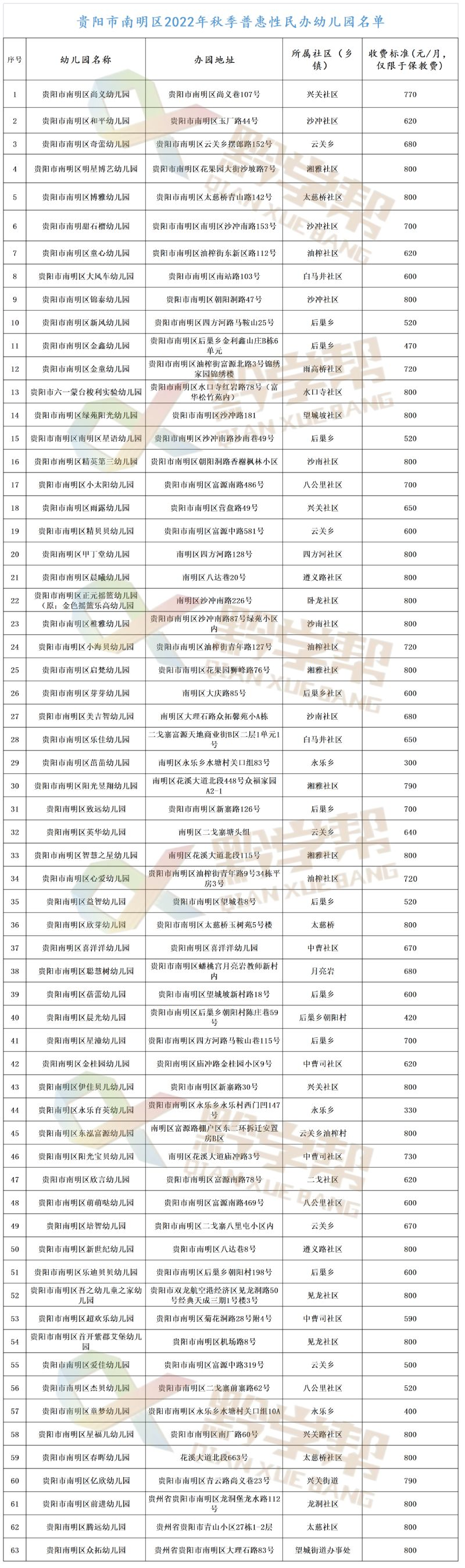 今天,小编为大家整理了贵阳市南明区与云岩区的2022年秋季普惠性民办幼儿园名单,共计100余所,其中有的幼儿园收费标准低至300元/月,仅根据学费是不是都觉得心动呢,一起来看看吧!
