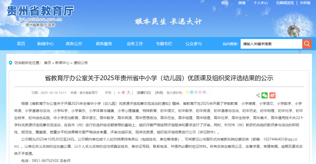 根据《省教育厅办公室关于开展2025年全省中小学(幼儿园)优质课评选观摩交流活动的通知》精神,省教育厅在2025年开展了学前教育、小学德育、小学语文等32个学科优质课评选观摩交流活动,在各市(州)进行初选并按名额推荐的基础上,组织评委严格按照评选程序和要求进行了评审。同时,针对市(州)教研机构组织教师参与活动的积极性、规范性、覆盖面、质量水平和效果等方面严格综合考量,评审出组织奖,现将优质课、组织奖评选结果进行公示,公示期为2025年10月20日至24日。一起来看——
