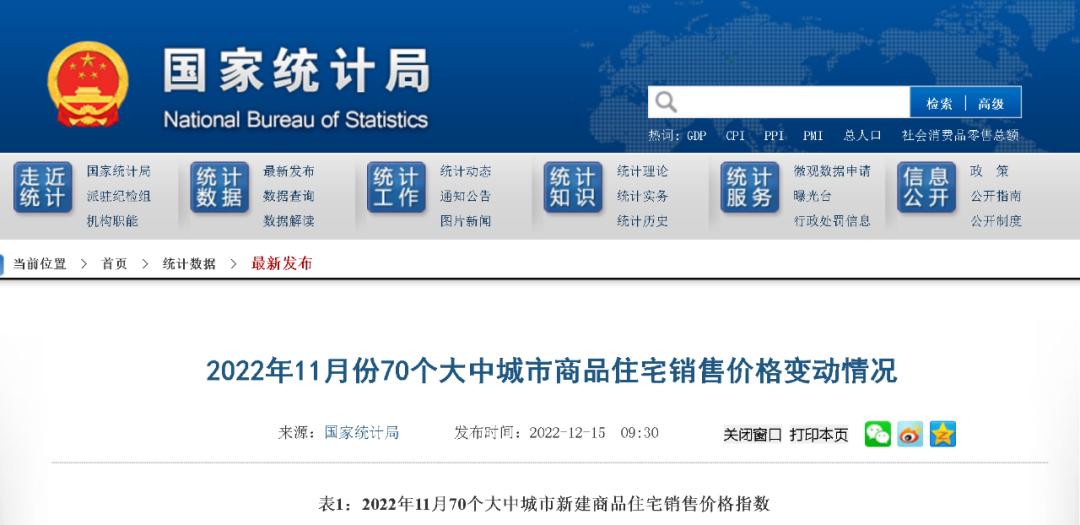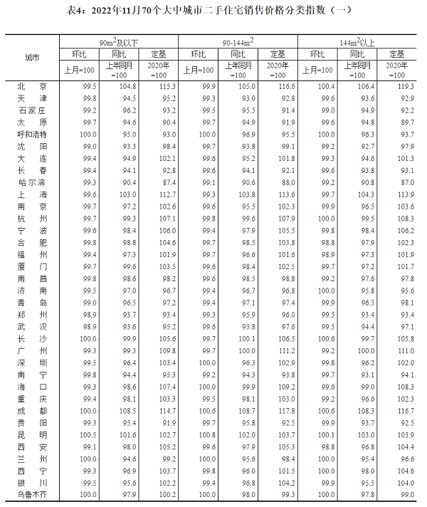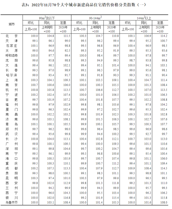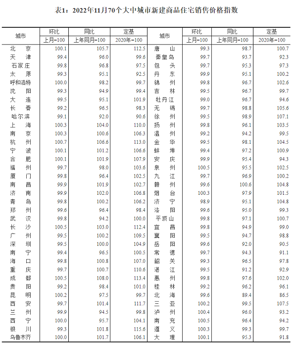 国家统计局今日公布2022年11月份商品住宅销售价格变动情况统计数据。11月份,70个大中城市中,新建商品住宅、二手住宅销售价格环比下降城市分别有51个、62个。