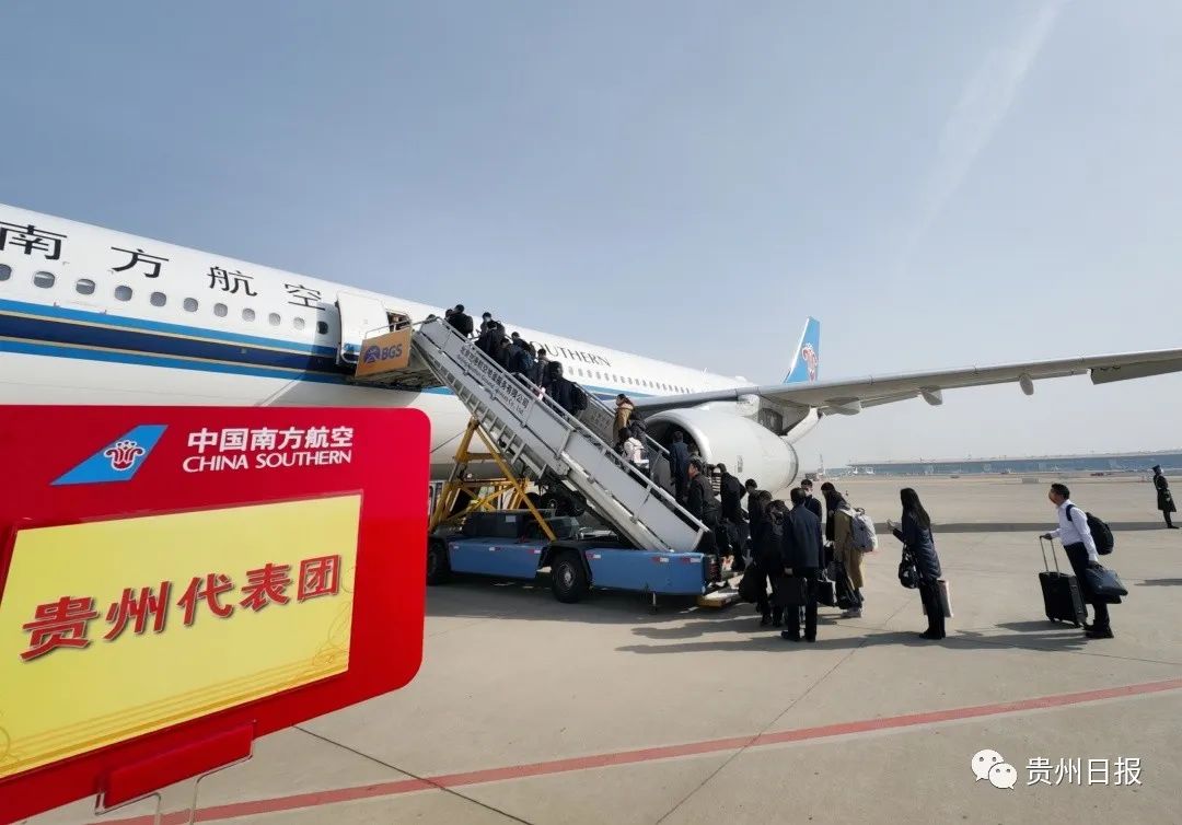 3月14日13时36分,赴京参加十四届全国人大一次会议的贵州代表在认真履行职责使命、圆满完成大会各项议程后,乘飞机返回贵阳。