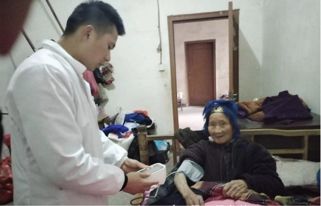 黔东南苗族侗族自治州施秉县双井镇中心卫生院上门为黄琴村的失能老人体检,同时向老年人普及老年健康政策、健康科普知识,使老年人切身感受到社会的关怀和温暖。