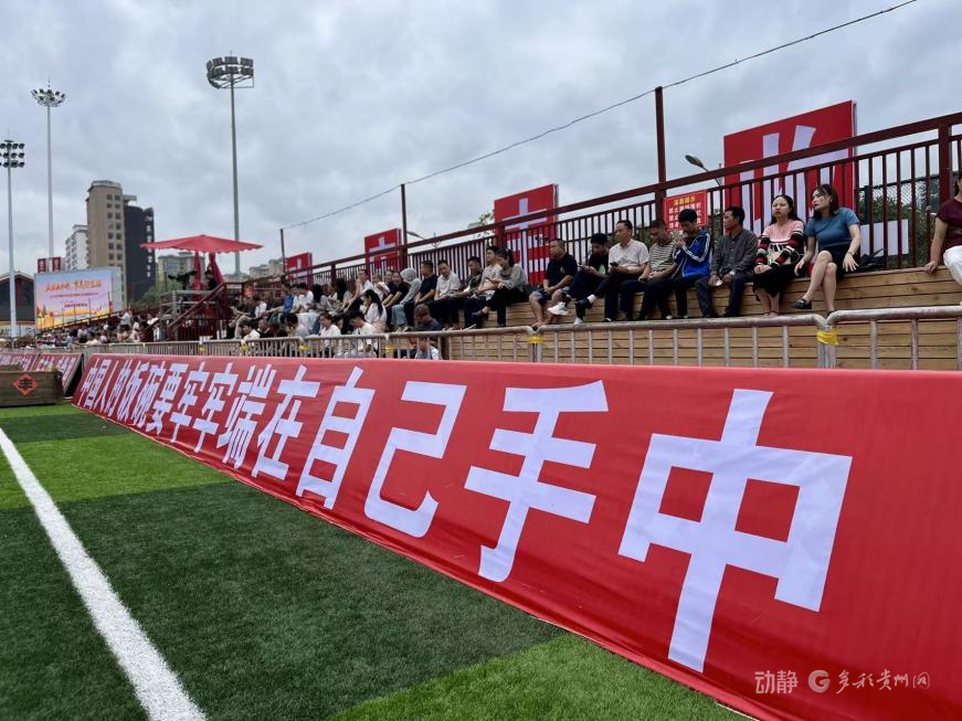 贵州村超球场上,“中国人的饭碗要牢牢端在自己手中”这条标语格外的醒目。